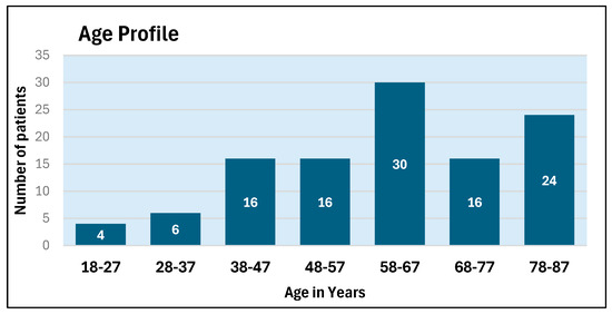 Age profile of patients admitted to the spinal unit during 2024–2025. (X axis: Age in years).