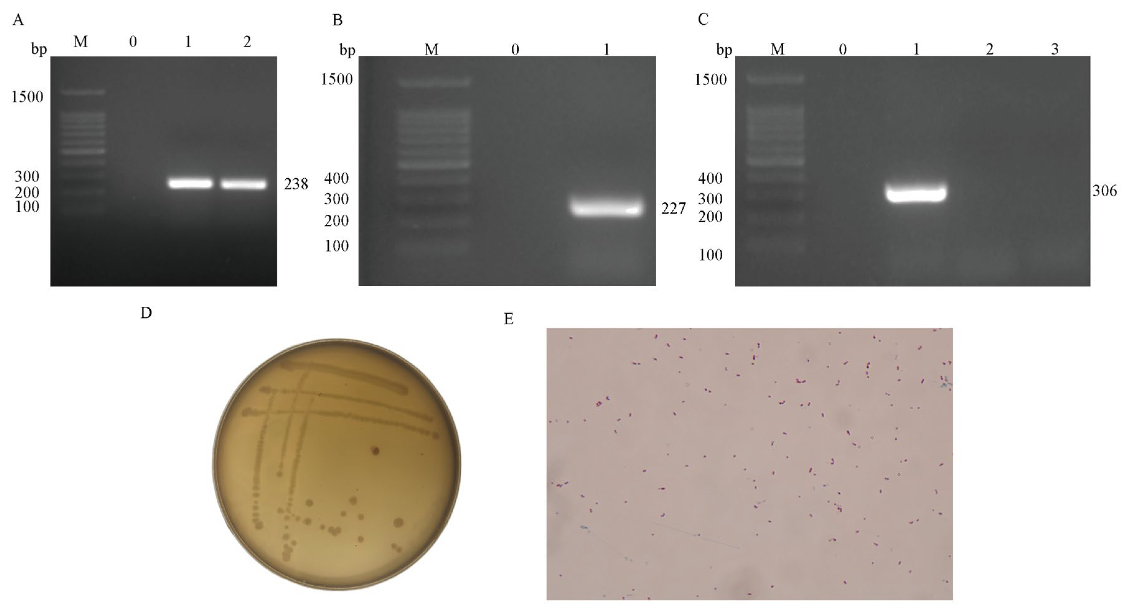 The results of agarose gel electrophoresis show that the strain has a clear band at 306 bp between 300 bp and 400 bp (Figure 1C), which confirms that the serotype of strain XJCJMh1 is type A1.