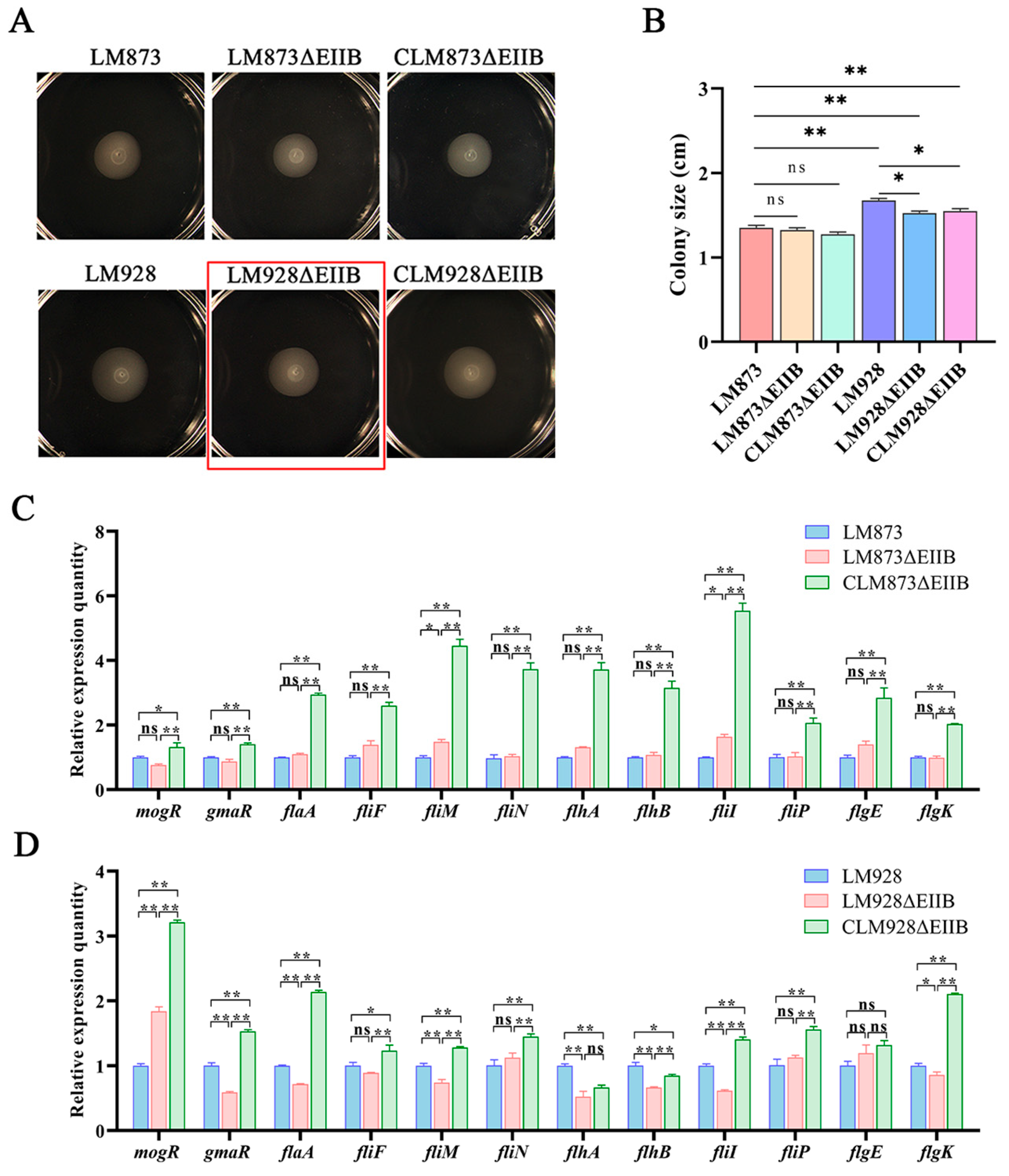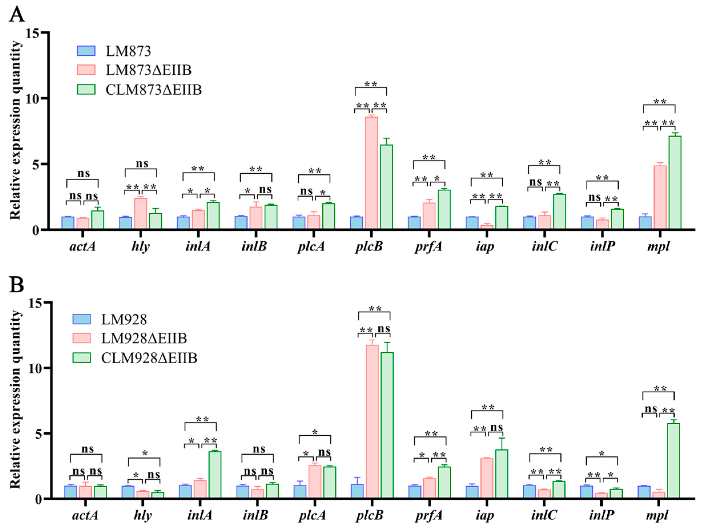 Liu L, Liu C, Qian R, Qi Y, Yin Z, Luo R, Du D, Liu Z, Kang L, Wang J. The PTS EIIB Component Drives Strain-Specific Virulence in Listeria monocytogenes: Divergent Regulation of Biofilm Formation and Host Infection in High- and Low-Virulence Strains. Microorganisms. 2025; 13(10):2274. https://doi.org/10.3390/microorganisms13102274