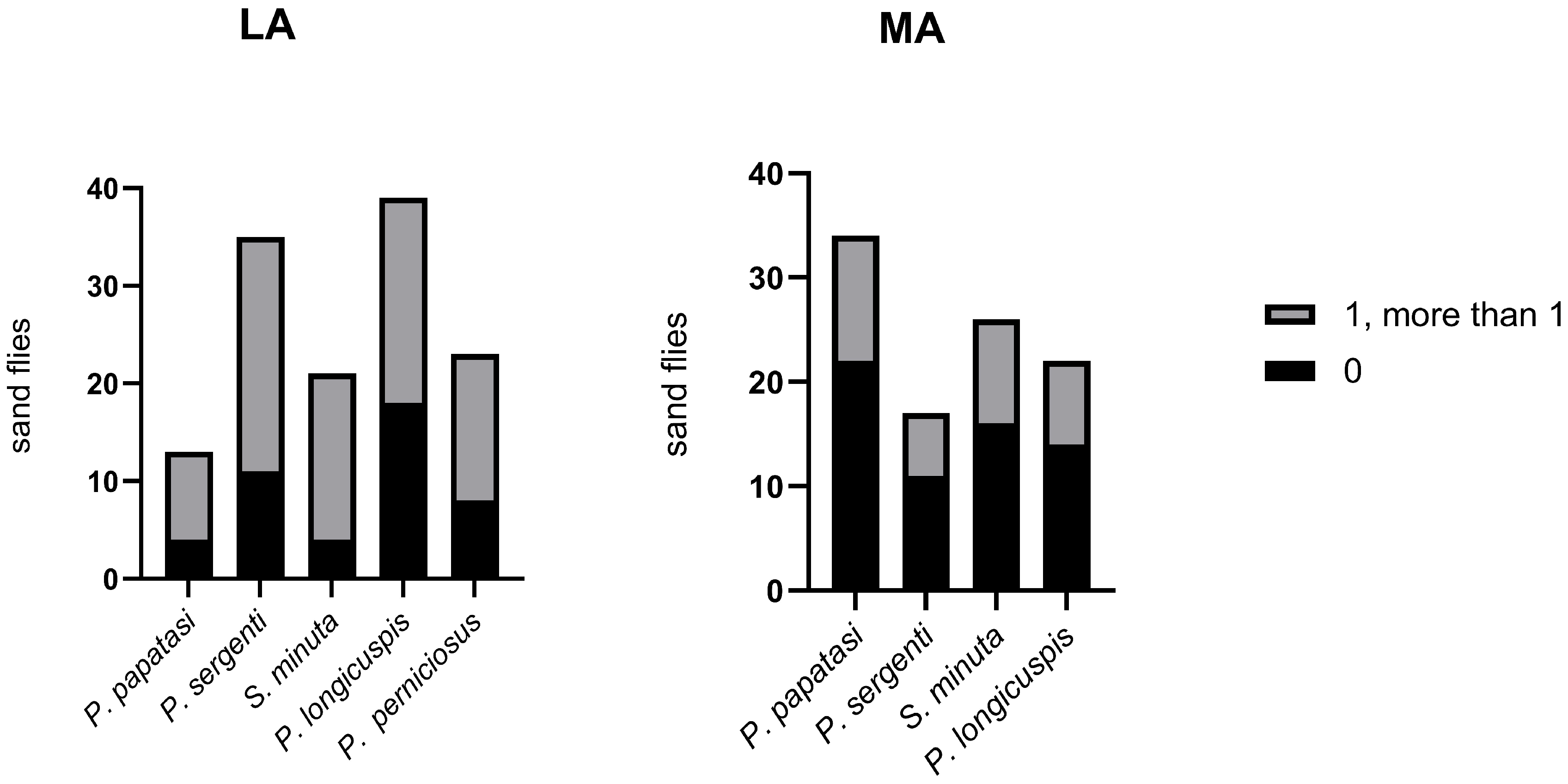 Location | P. papatasi | P. longicuspis | P. sergenti | P. perniciosus | S. minuta | Total | |||||
