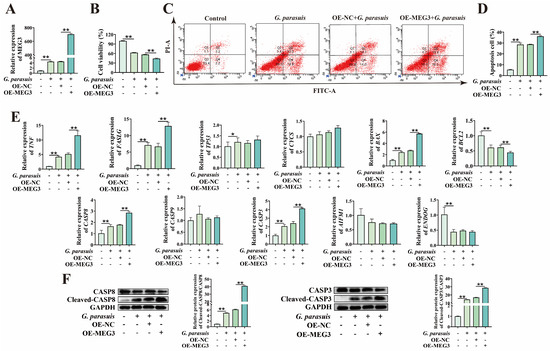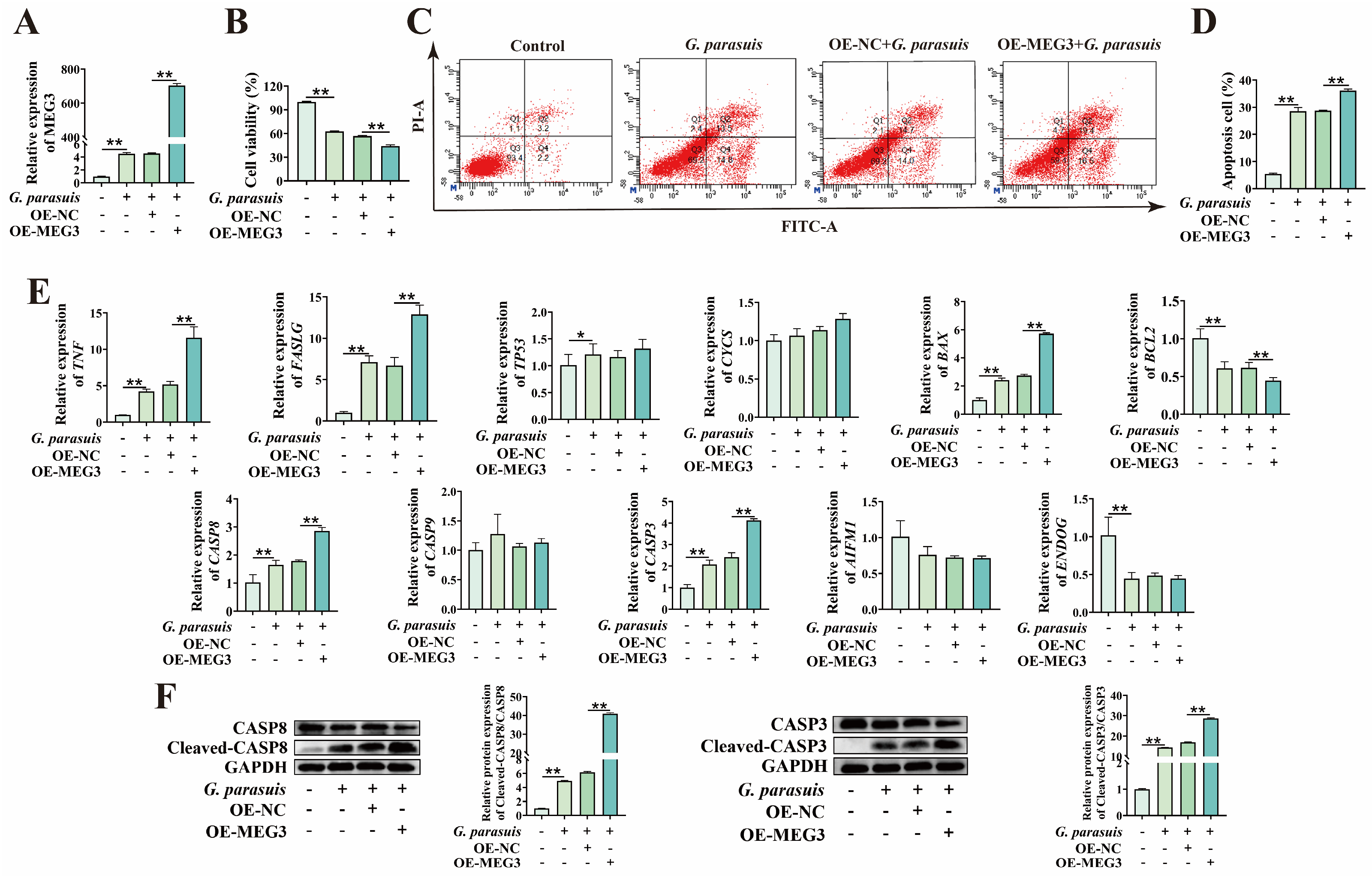 3.1. Overexpression of MEG3 Promotes G. parasuis-Induced Apoptosis of 3D4/21 Cells
