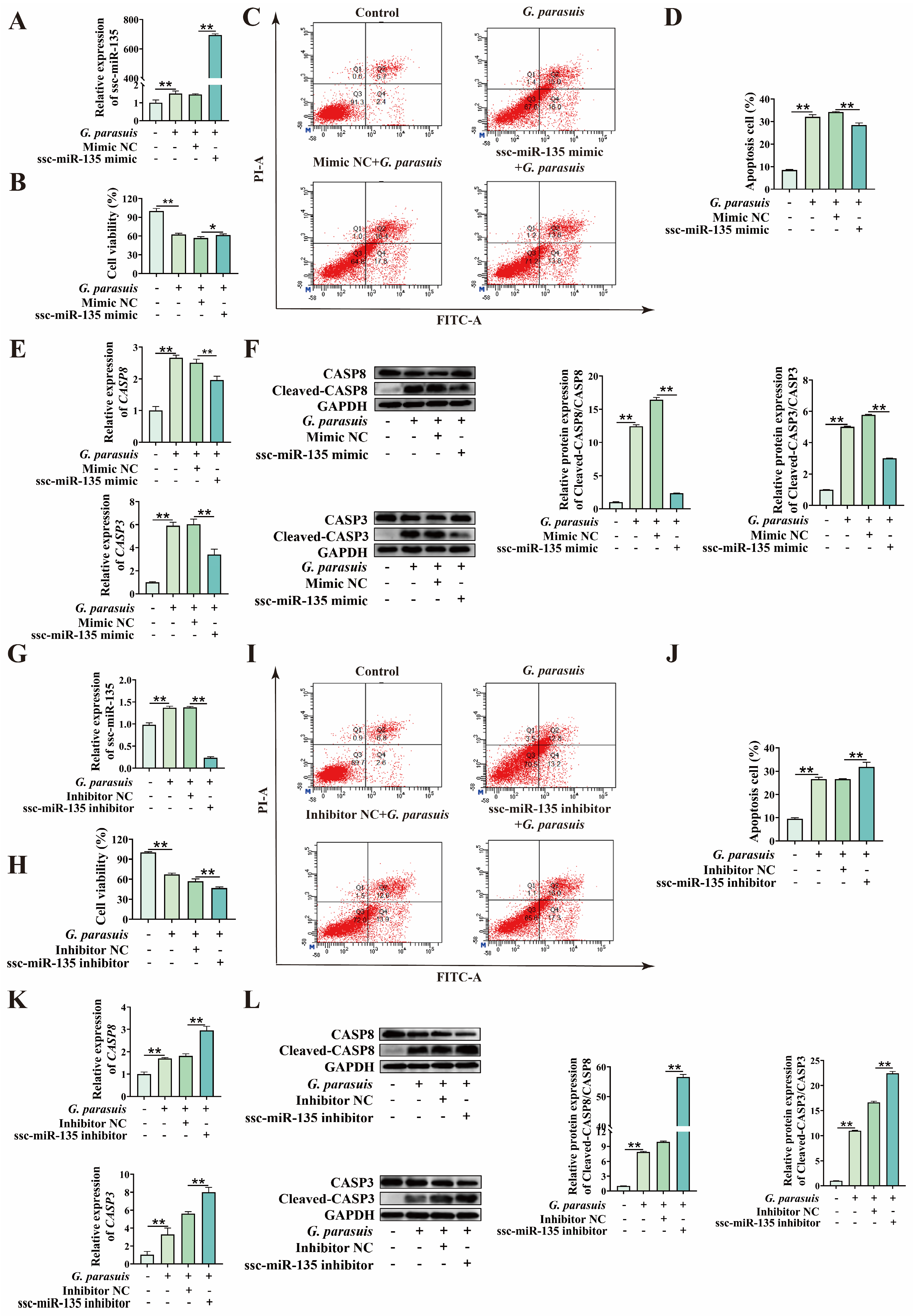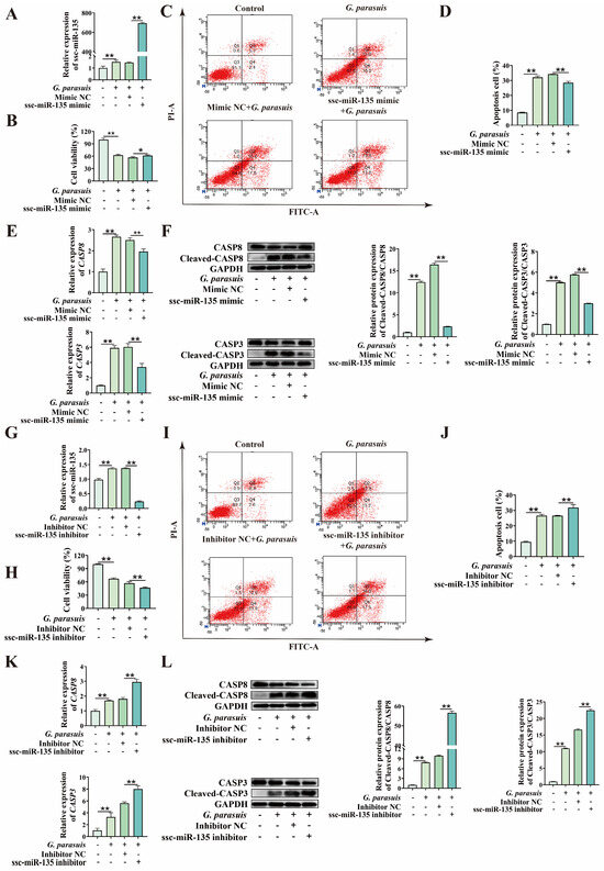 3.3. ssc-miR-135 Regulates G. parasuis-Induced Apoptosis in 3D4/21 Cells