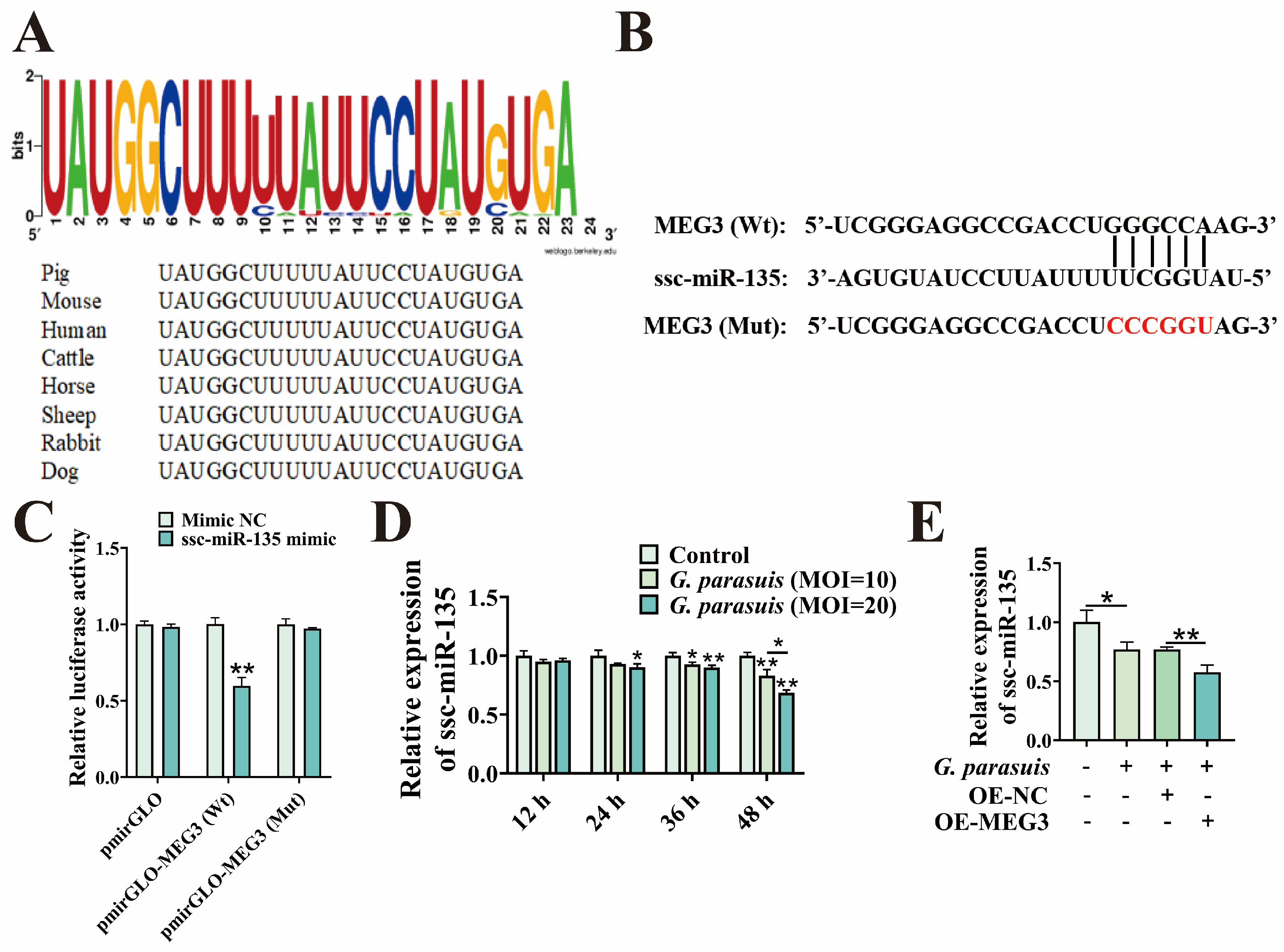 3.2. MEG3 as a Molecular Sponge for ssc-miR-135