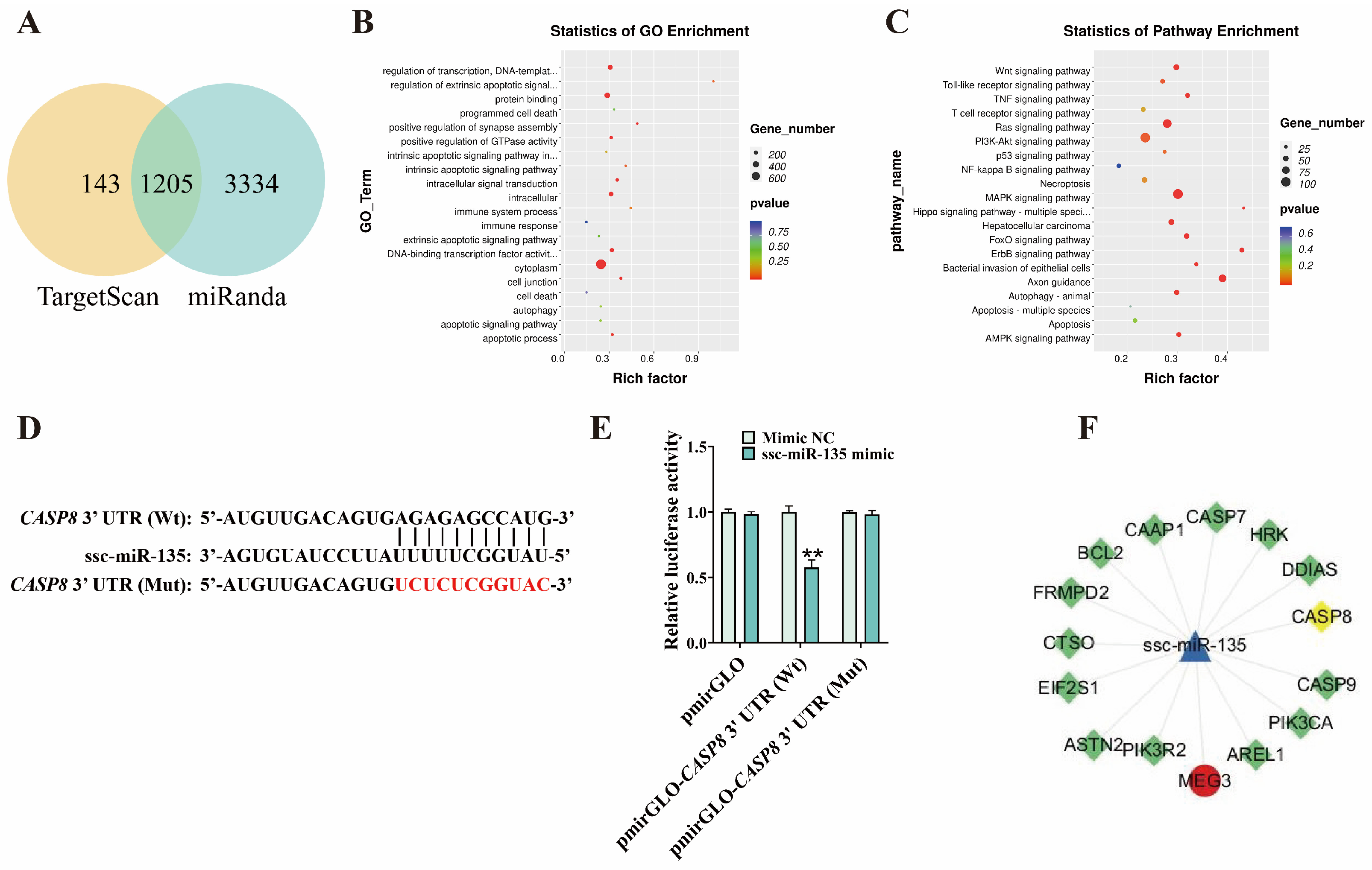 3.4. ssc-miR-135 Directly Interacts with CASP8