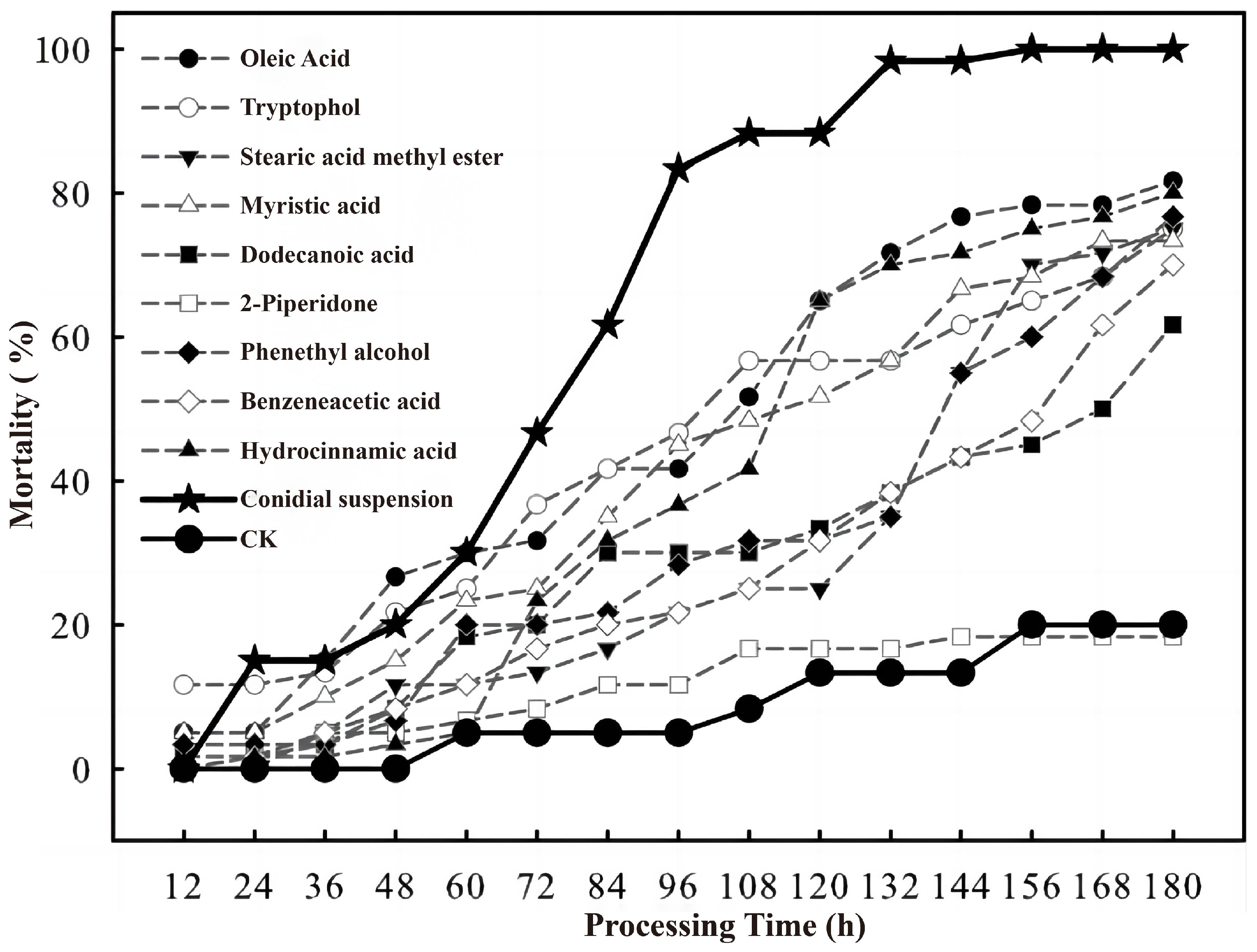 23], this study aimed to investigate the insecticidal mechanism of its secondary metabolites. Fermentation broth of