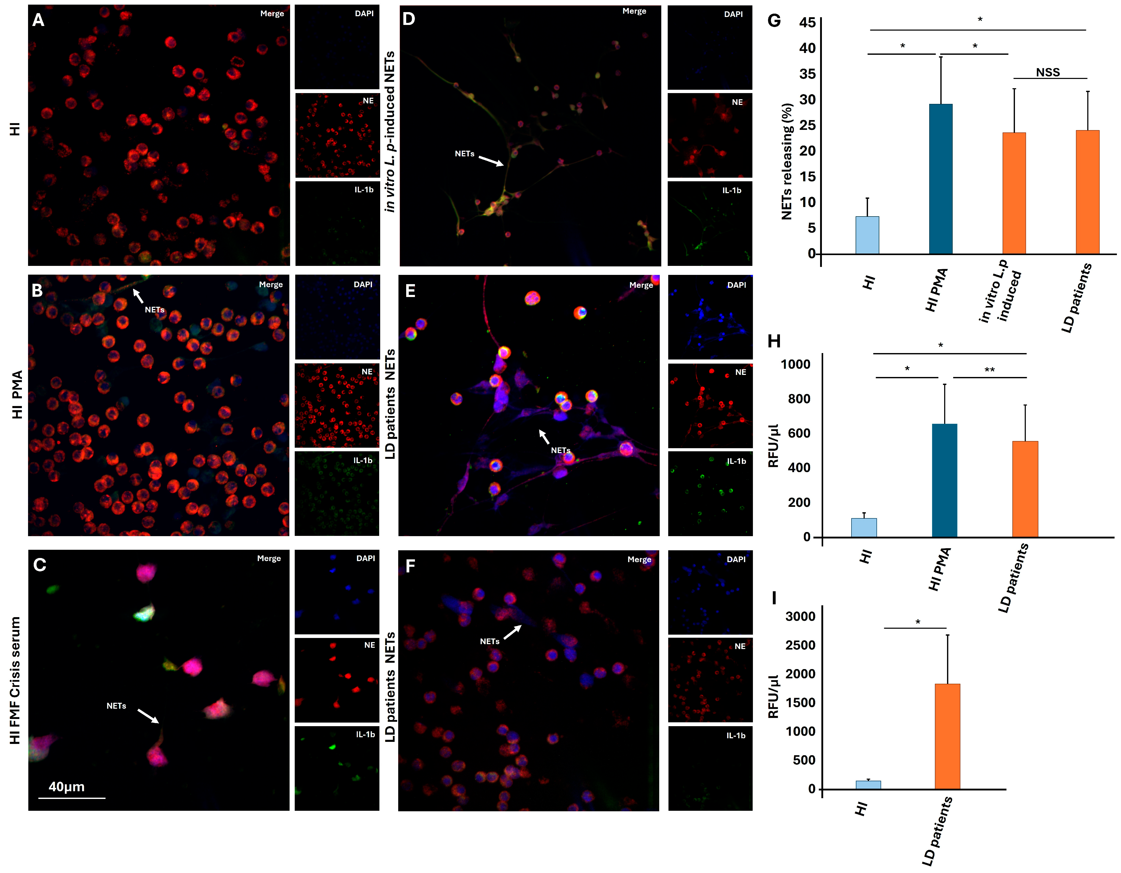 - Koutantou, M.; Konstantinidis, T.; Chochlakis, D.; Xingi, E.; Psaroulaki, A.; Tsiotis, G.; Kambas, K.; Angelakis, E. IL-1beta Expressing Neutrophil Extracellular Traps in Legionella Pneumophila Infection. Front. Immunol. 2025, 16, 1573151. [Google Scholar] [CrossRef] [PubMed]