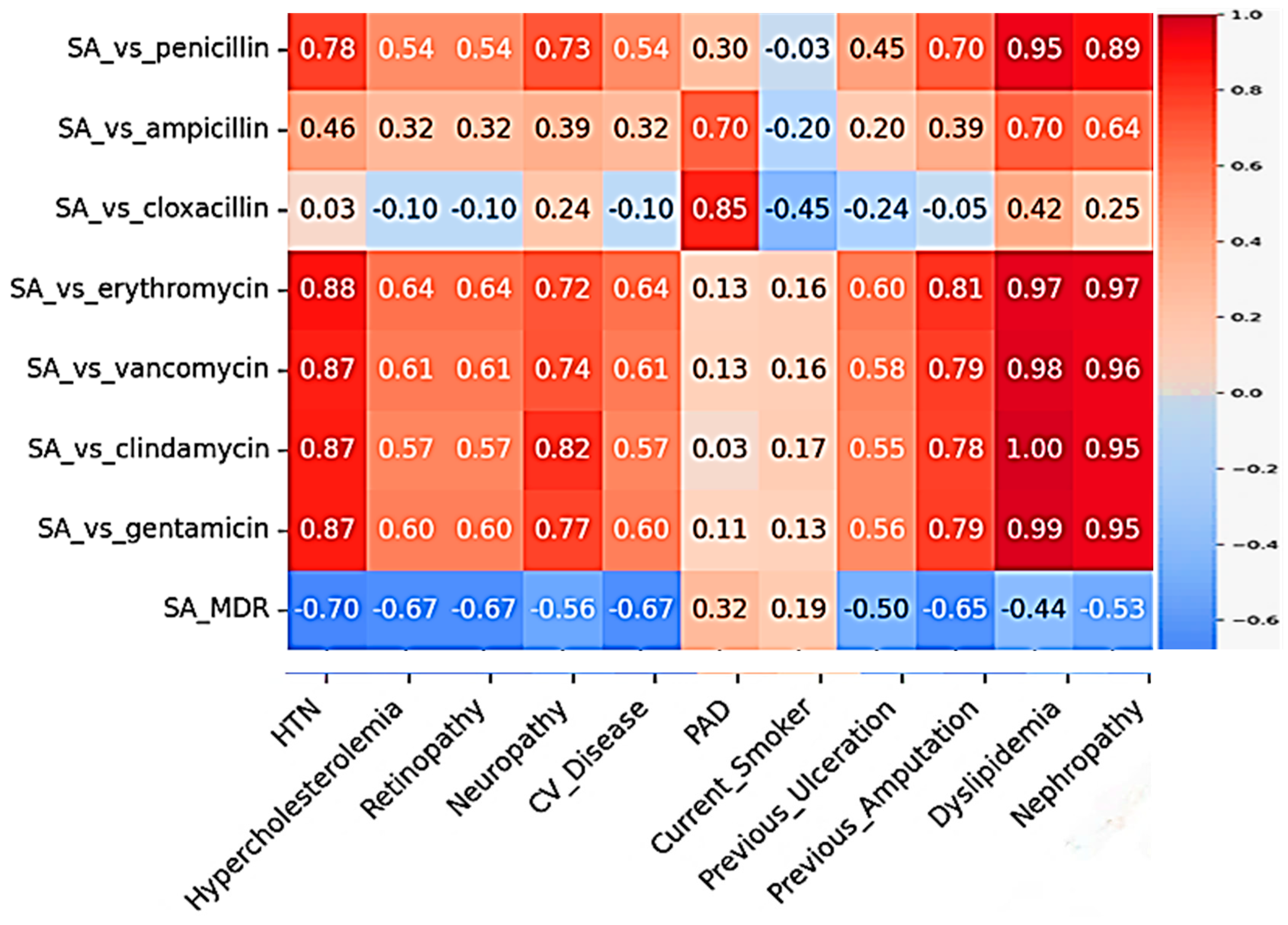 - The impact of comorbidities (e.g., vascular disease, renal impairment) on antibiotic resistance patterns. Correlation analysis was performed using R.