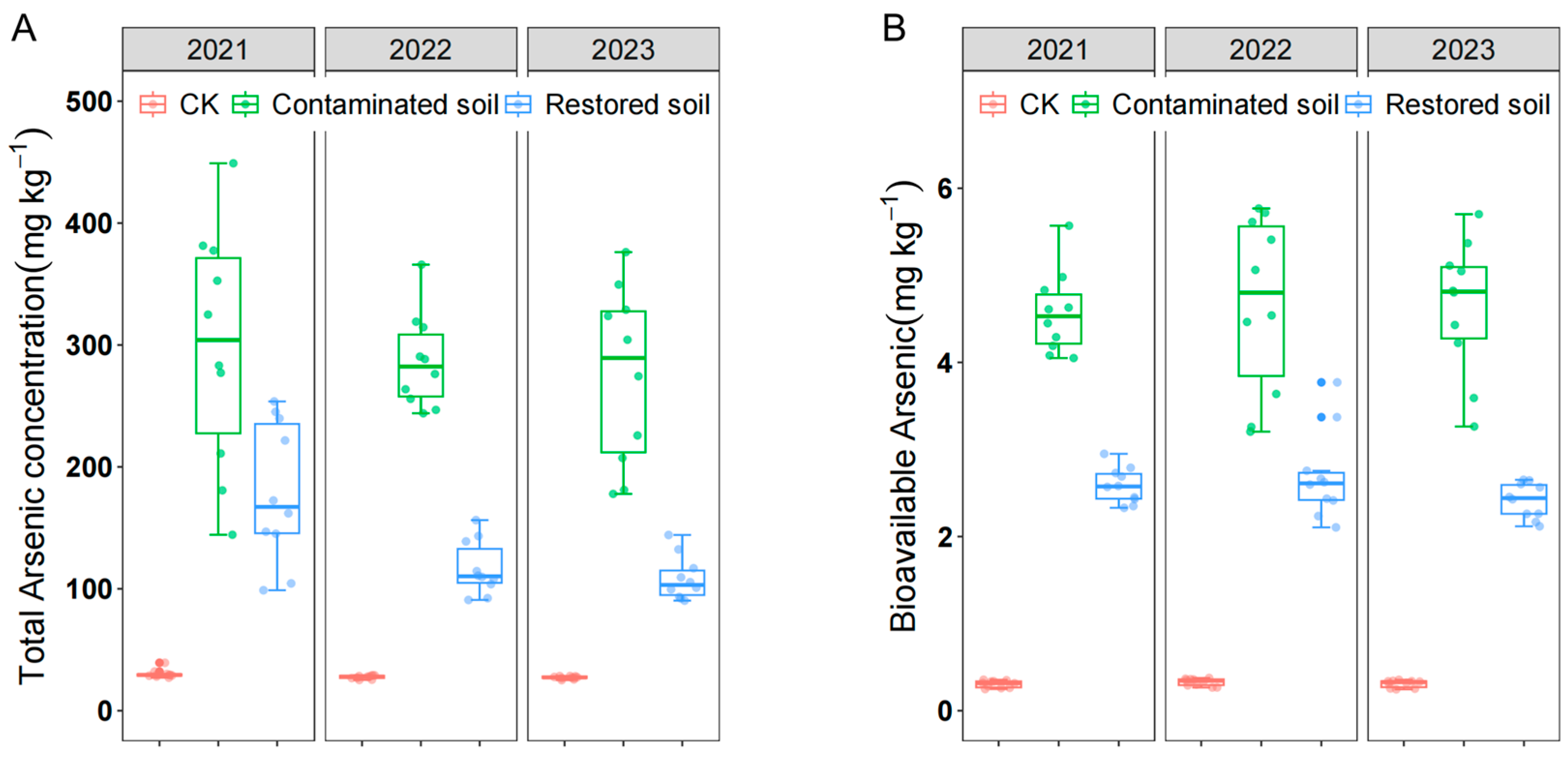 2.3. Determination of Total Arsenic and Bioavailable Arsenic in Soil