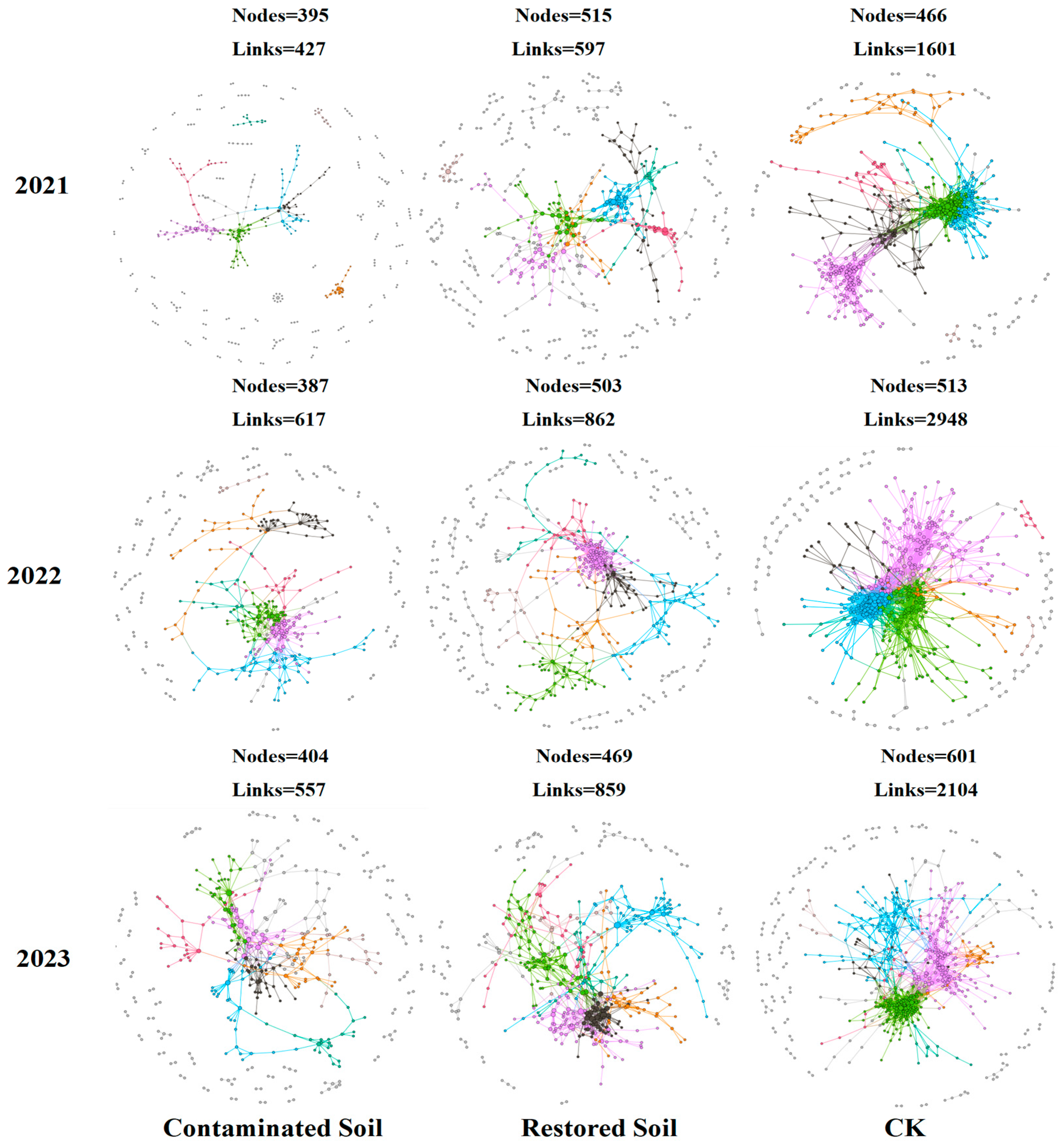 - Sun, C.; Wu, P.; Wang, G.; Kong, X. Heavy metal pollution decreases the stability of microbial co-occurrence networks in the rhizosphere of native plants. Front. Environ. Sci. 2022, 10, 979922. [Google Scholar] [CrossRef]