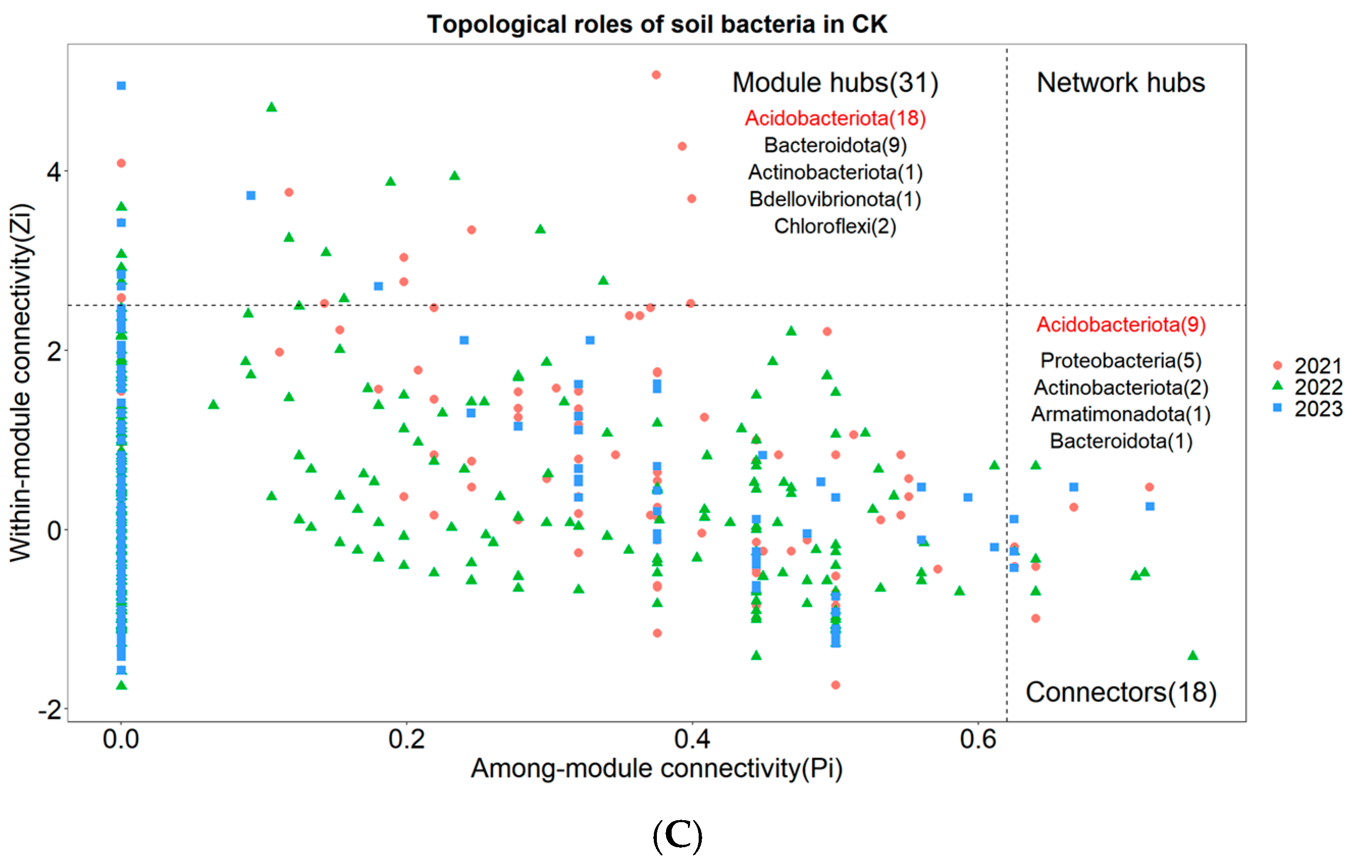 - Yuan, M.M.; Guo, X.; Wu, L.; Zhang, Y.; Xiao, N.; Ning, D.; Shi, Z.; Zhou, X.; Wu, L.; Yang, Y.; et al. Climate warming enhances microbial network complexity and stability. Nat. Clim. Change 2021, 11, 343–348. [Google Scholar] [CrossRef]