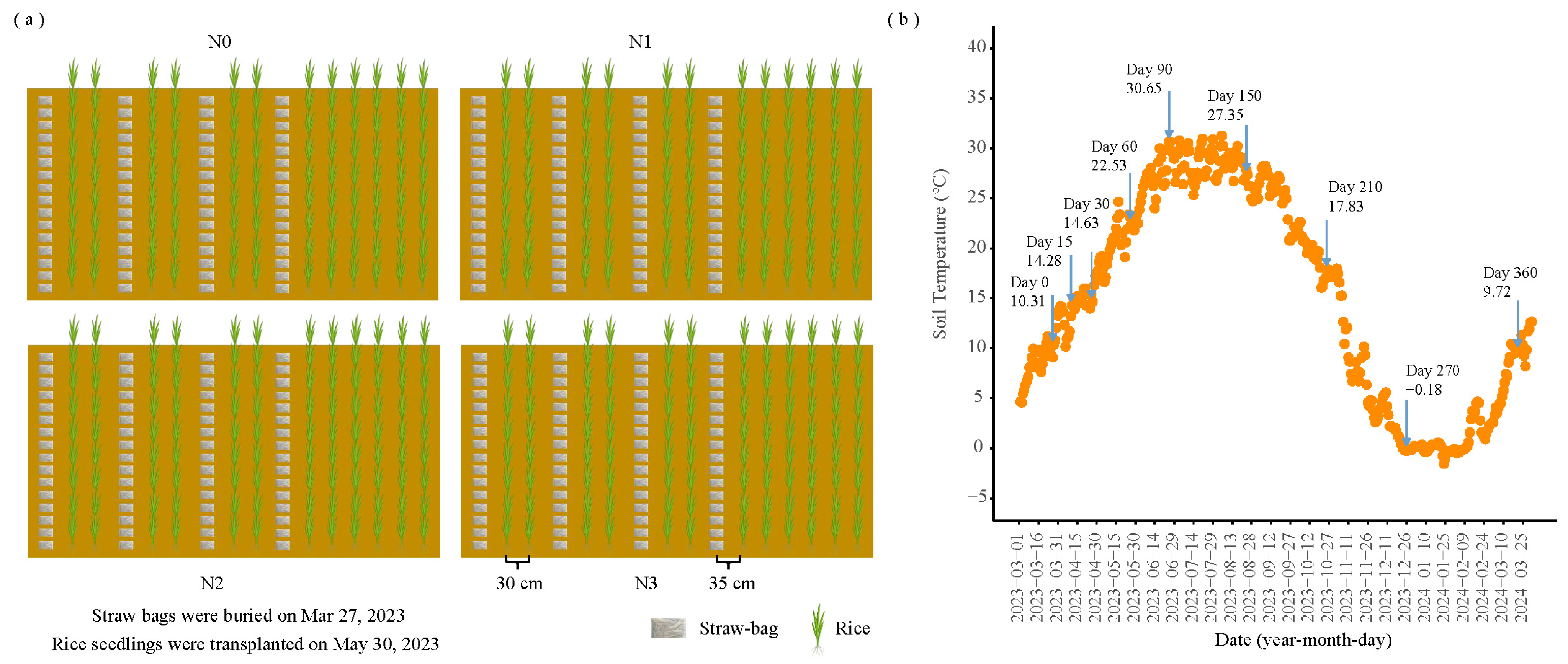 - Mai, Y.; Bu, R.; HanShang Lei, Z.; Li, M.; Wang, H.; Cheng, W.; Tang, S.; Wu, J.; Zhu, L. Effects of adding different exogenous N on rice straw decomposition and nutrient release. Trans. Chin. Soc. Agric. Eng. 2021, 37, 210–219. [Google Scholar]