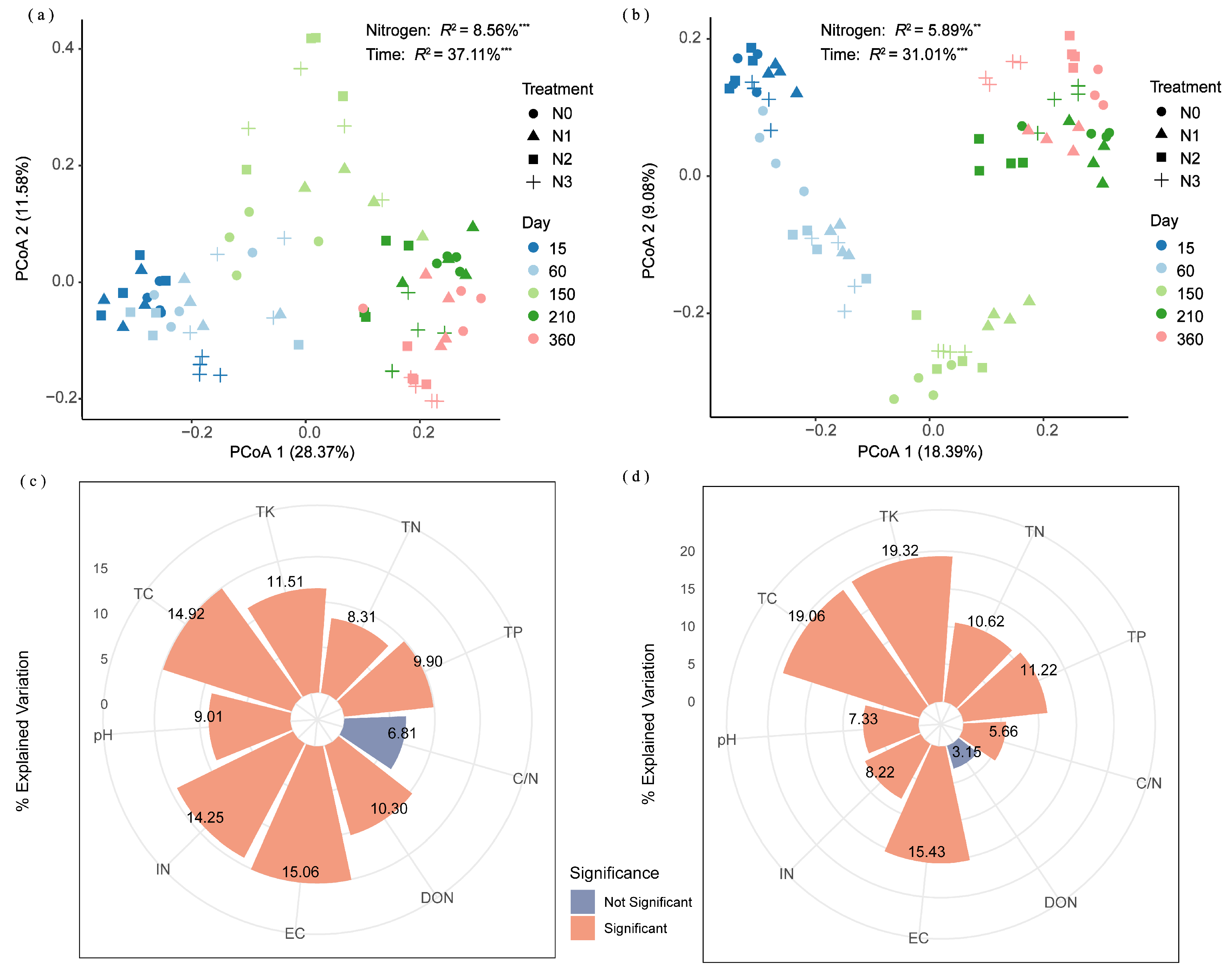 3.4. Changes in the Community Structures of Bacteria Involved in Straw Alkaline Protein and Chitin Degradation Under Different Decomposition Stages and N Application Rates