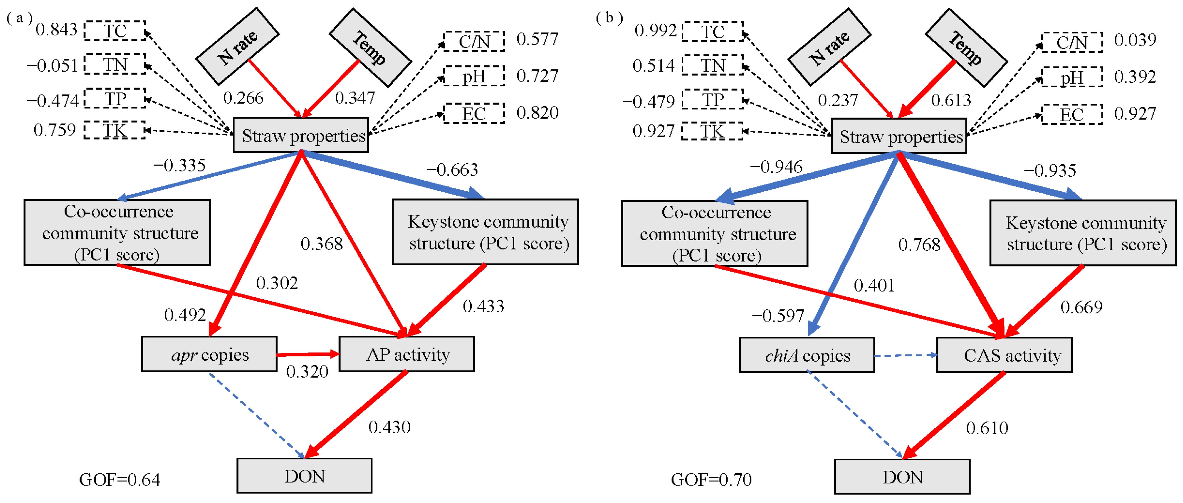 3.3. Key Factors Regulating Straw N Hydrolase Enzymes