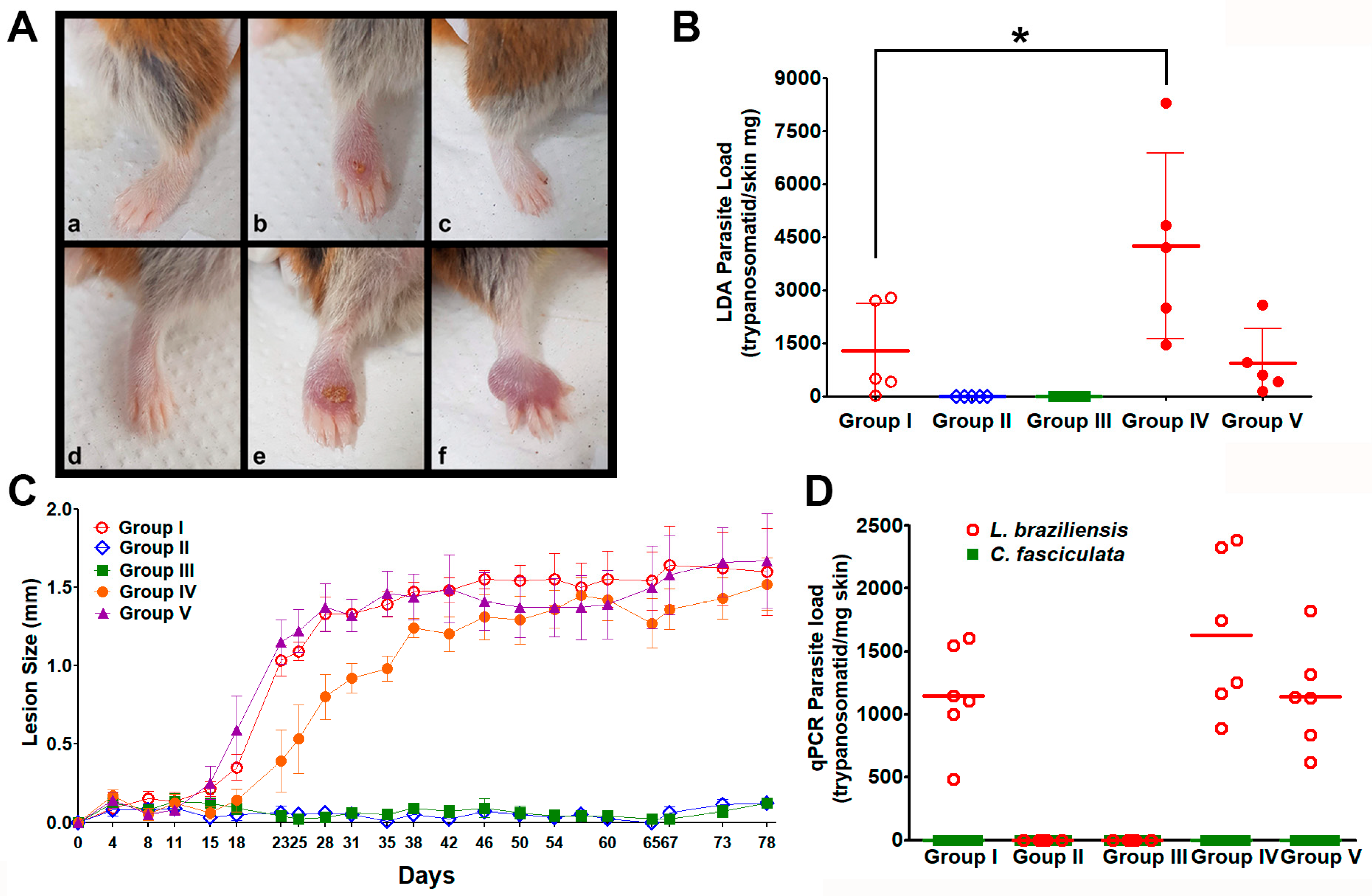- Gomes-Silva, A.; Valverde, J.G.; Ribeiro-Romão, R.P.; Placido-Pereira, R.M.; Da-Cruz, A.M. Golden hamster (Mesocricetus auratus) as an experimental model for Leishmania (Viannia) braziliensis infection. Parasitology 2013, 140, 771–779. [Google Scholar] [CrossRef]