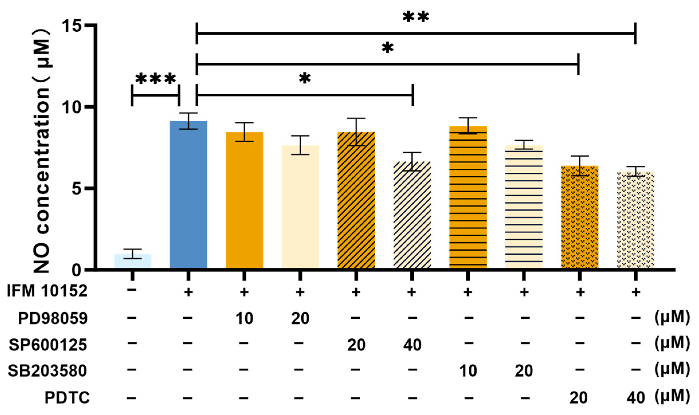 3.4. NO Is Induced by N. farcinica Through MAPK JNK and NF-κB Signaling