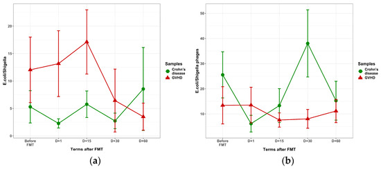 Chukhlovin, A.B.; Goloshchapov, O.V.; Shchukina, O.B.; Kharitidis, A.M.; Zhloba, A.A.; Subbotina, T.F.; Kusakin, A.V.; Kosarev, O.V.; Tsai, V.V.; Kalinin, R.S.; et al. Changes in Gut Phageome and Bacteriome Following Fecal Microbiota Transfer in Patients with Intestinal Graft-Versus-Host Disease and Crohn’s Disease. Microorganisms 2025, 13, 2337. https://doi.org/10.3390/microorganisms13102337