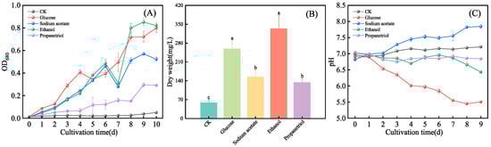 3.1. Effects of Organic Carbon Sources on the Growth, Dry Weight and pH of E. gracilis