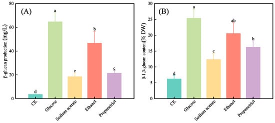 3.5. Effects of Different Organic Carbon Sources on the Content of β-1,3-Glucan in E. gracilis