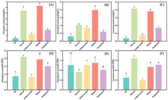 3.3. Effects of Different Organic Carbon Sources on Photosynthetic Pigments of E. gracilis