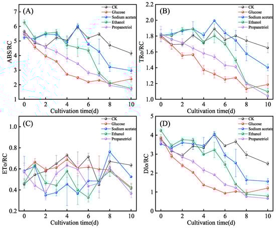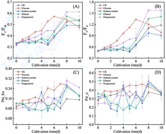 3.4. Effects of Different Organic Carbon Sources on Chlorophyll Fluorescence of E. gracilis