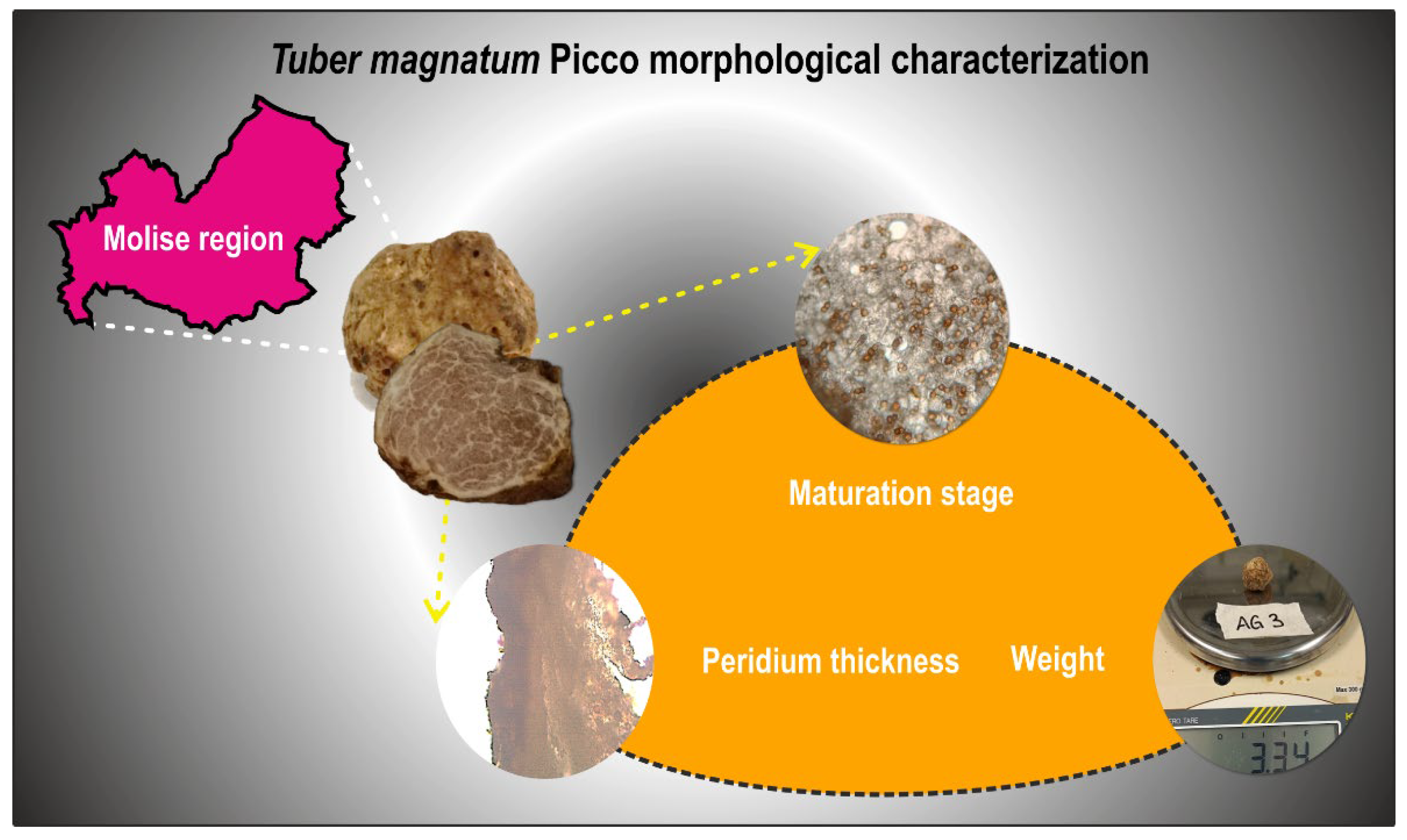 Bucci A, Monaco P, Caprari C, Di Pilla D, Mello A, Sferra G, Naclerio G. Morphological, Genetic, and Microbiological Characterization of Tuber magnatum Picco Populations from “Alto Molise”, Central-Southern Italy. Microorganisms. 2025; 13(10):2340. https://doi.org/10.3390/microorganisms13102340