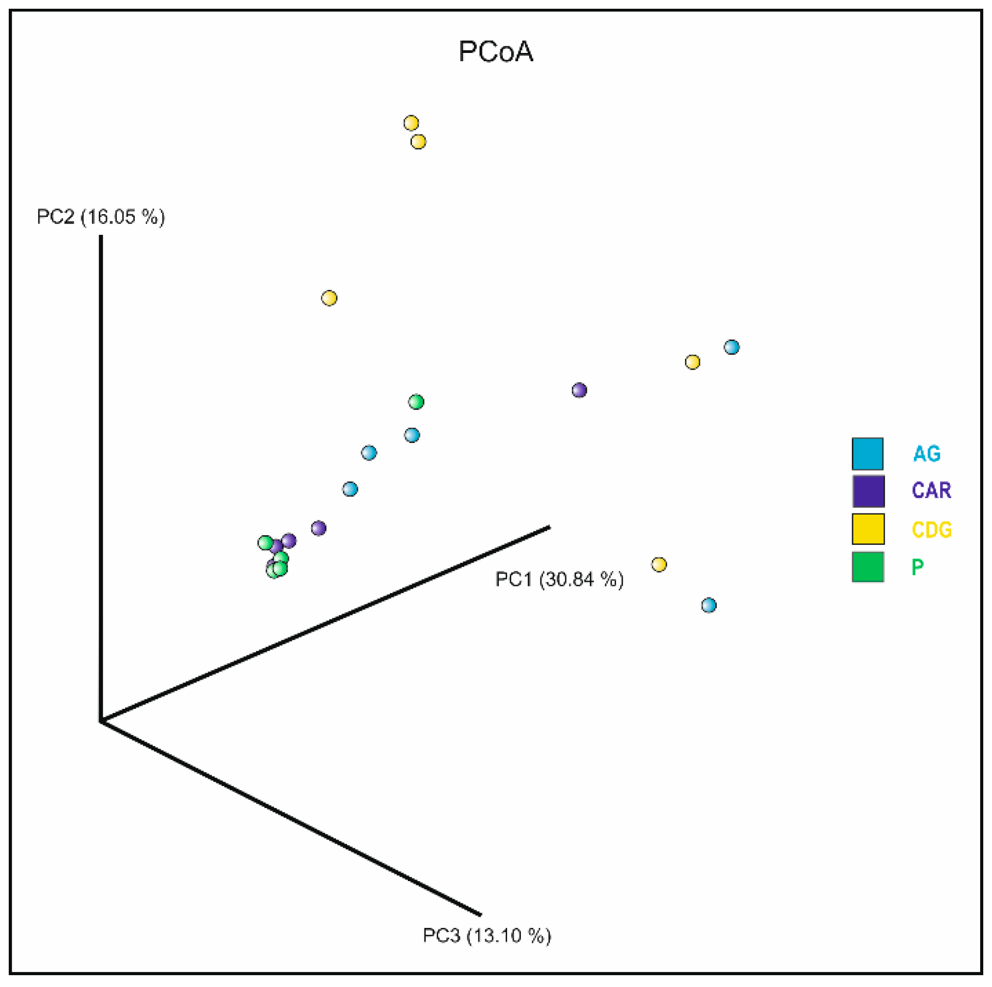 - Caporaso, J.G.; Kuczynski, J.; Stombaugh, J.; Bittinger, K.; Bushman, F.D.; Costello, E.K.; Fierer, N.; Peña, A.G.; Goodrich, J.K.; Gordon, J.I.; et al. QIIME allows analysis of high-throughput community sequencing data. Nat. Methods 2010, 7, 335–336. [Google Scholar] [CrossRef]