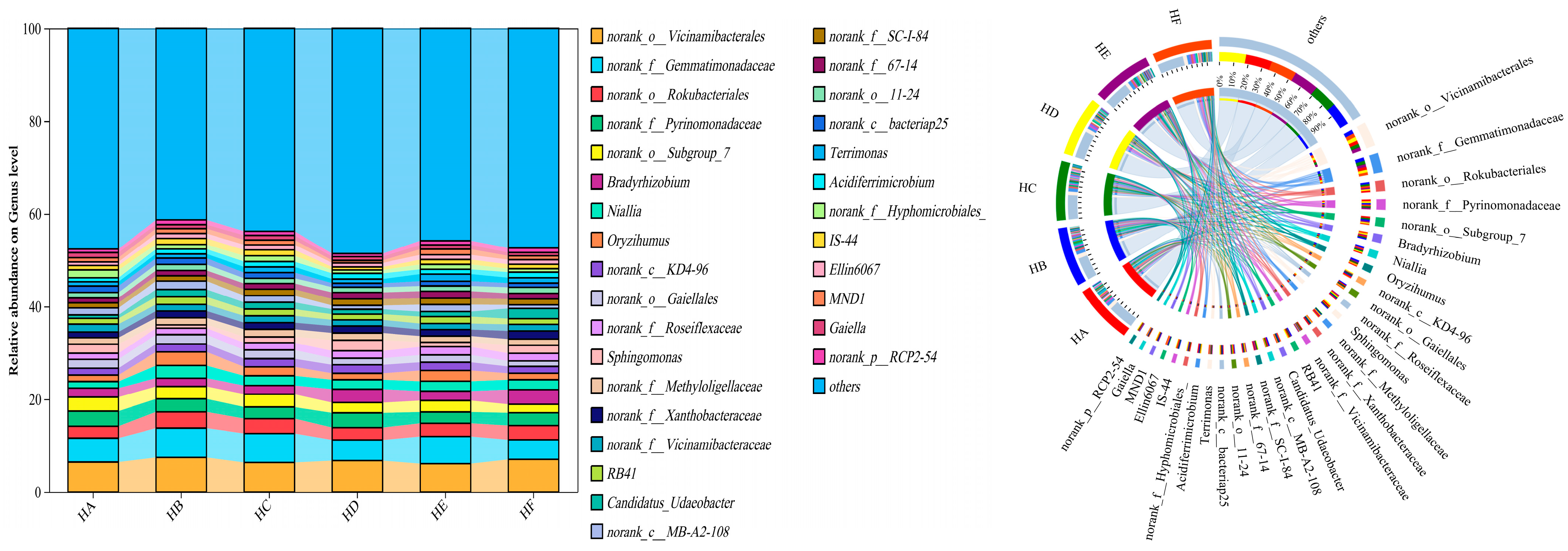 3.7. Heatmap Analysis of Soil Microbial Communities