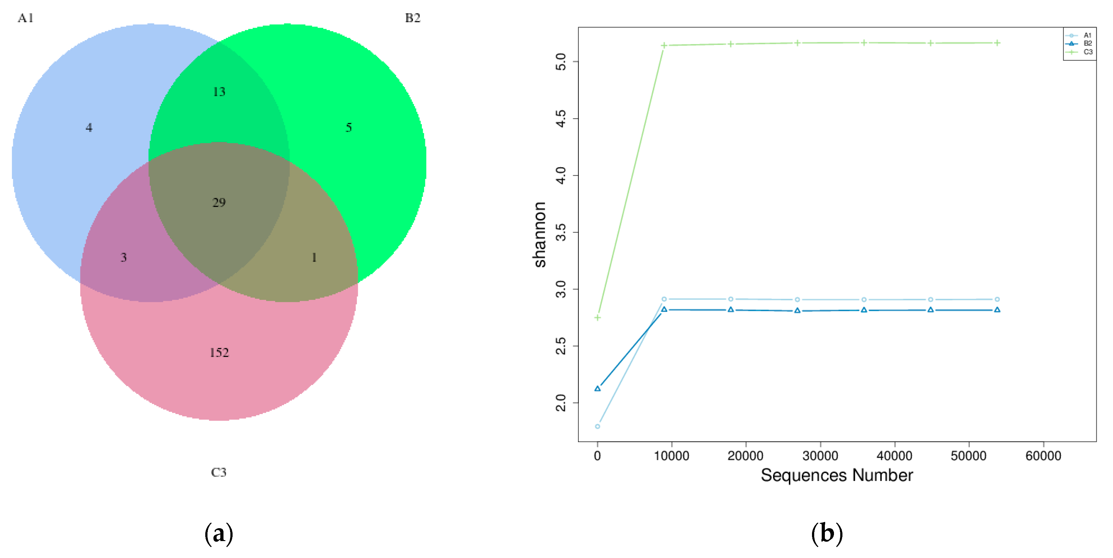 - Quast, C.; Pruesse, E.; Yilmaz, P.; Gerken, J.; Schweer, T.; Yarza, P.; Peplies, J.; Glöckner, F.O. The SILVA ribosomal RNA gene database project: Improved data processing and web-based tools. Nucleic Acids Res. 2013, 41, 590–596. [Google Scholar] [CrossRef] [PubMed]