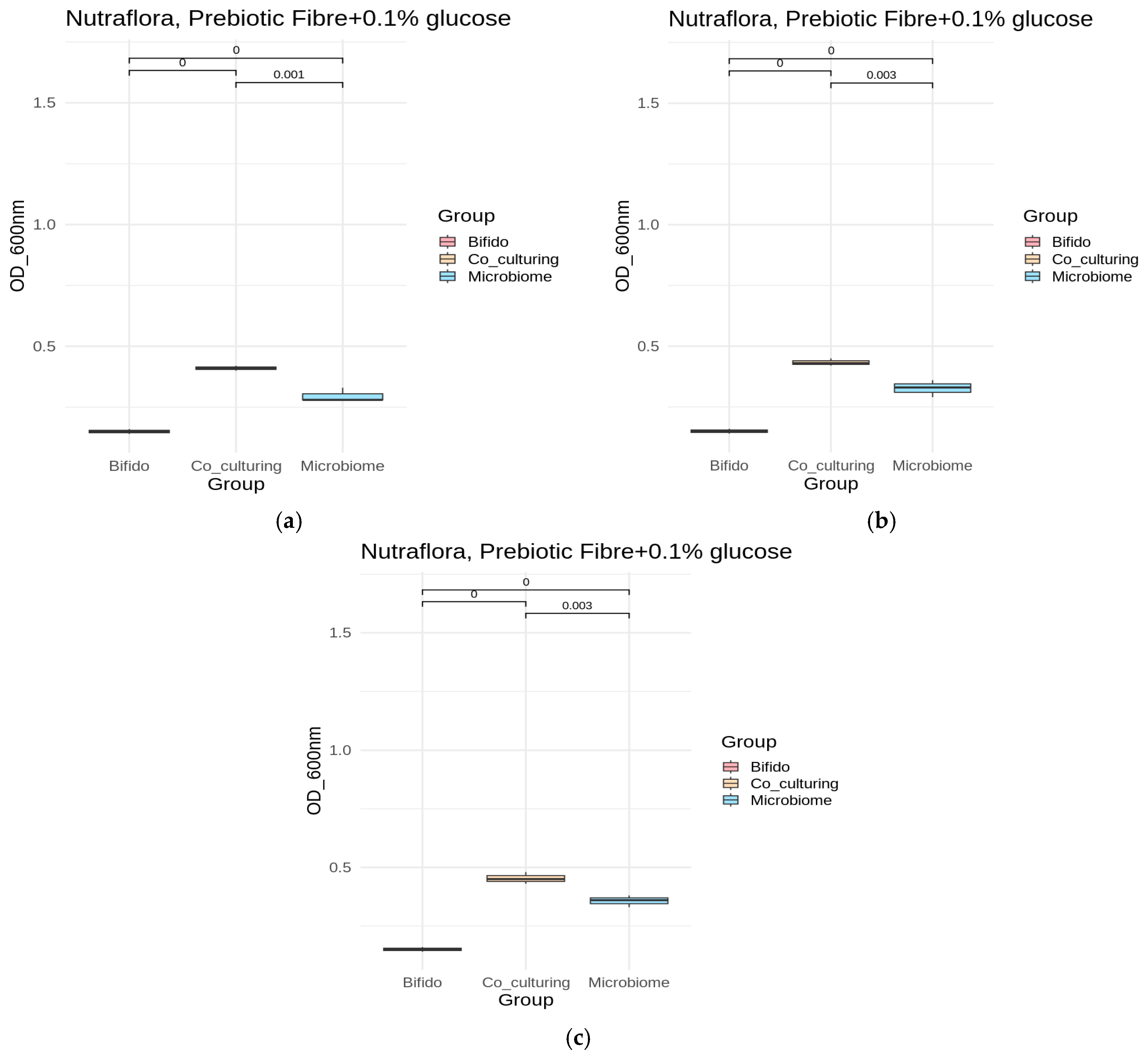 3.2. Co-Cultivation and Influence of B.bifidum on the Absorption of Prebiotic Substrates
