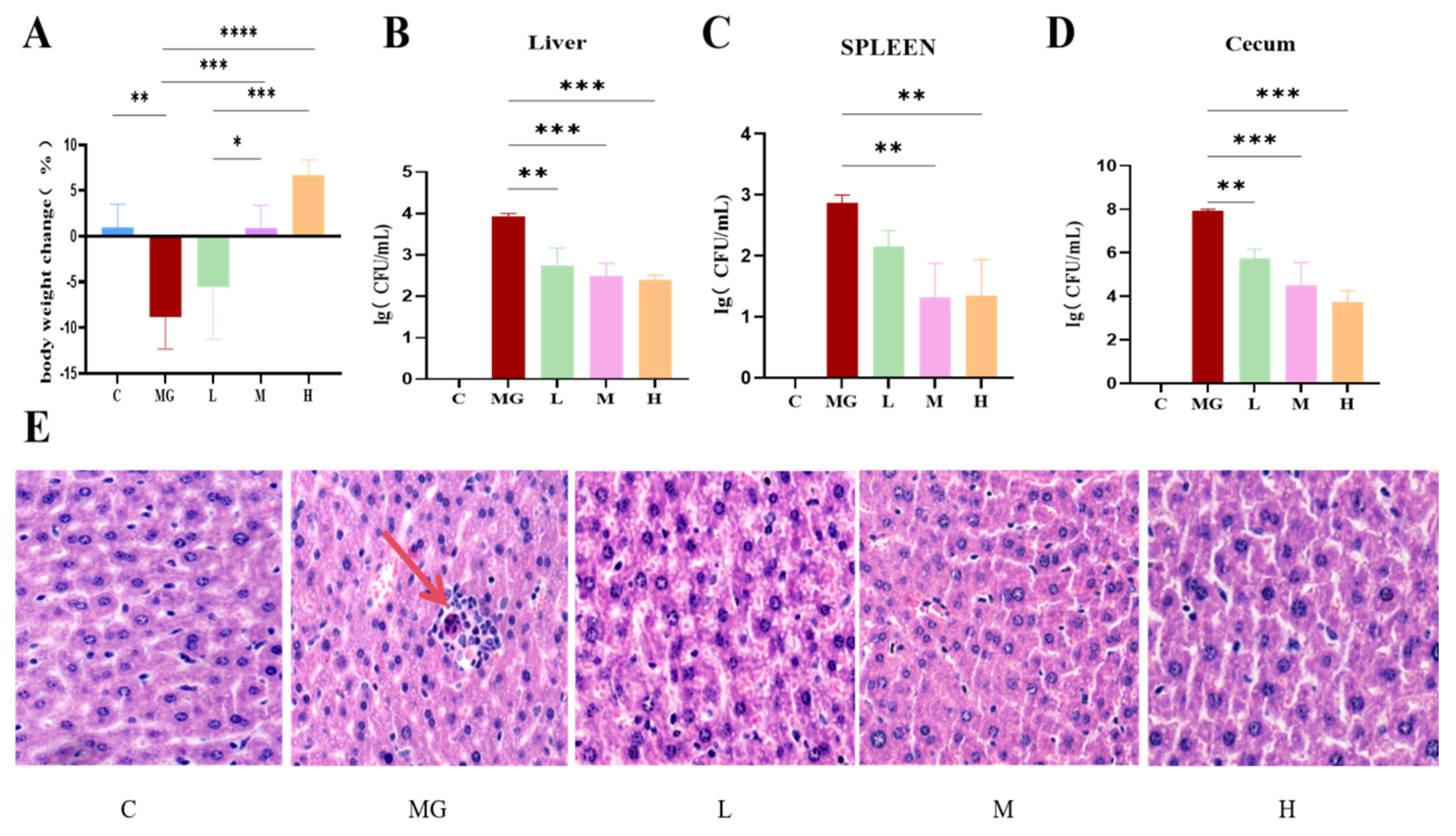3.3. P. acidilactici M22 Attenuates S. Typhimurium–Induced Hepatic Histopathological Damage
