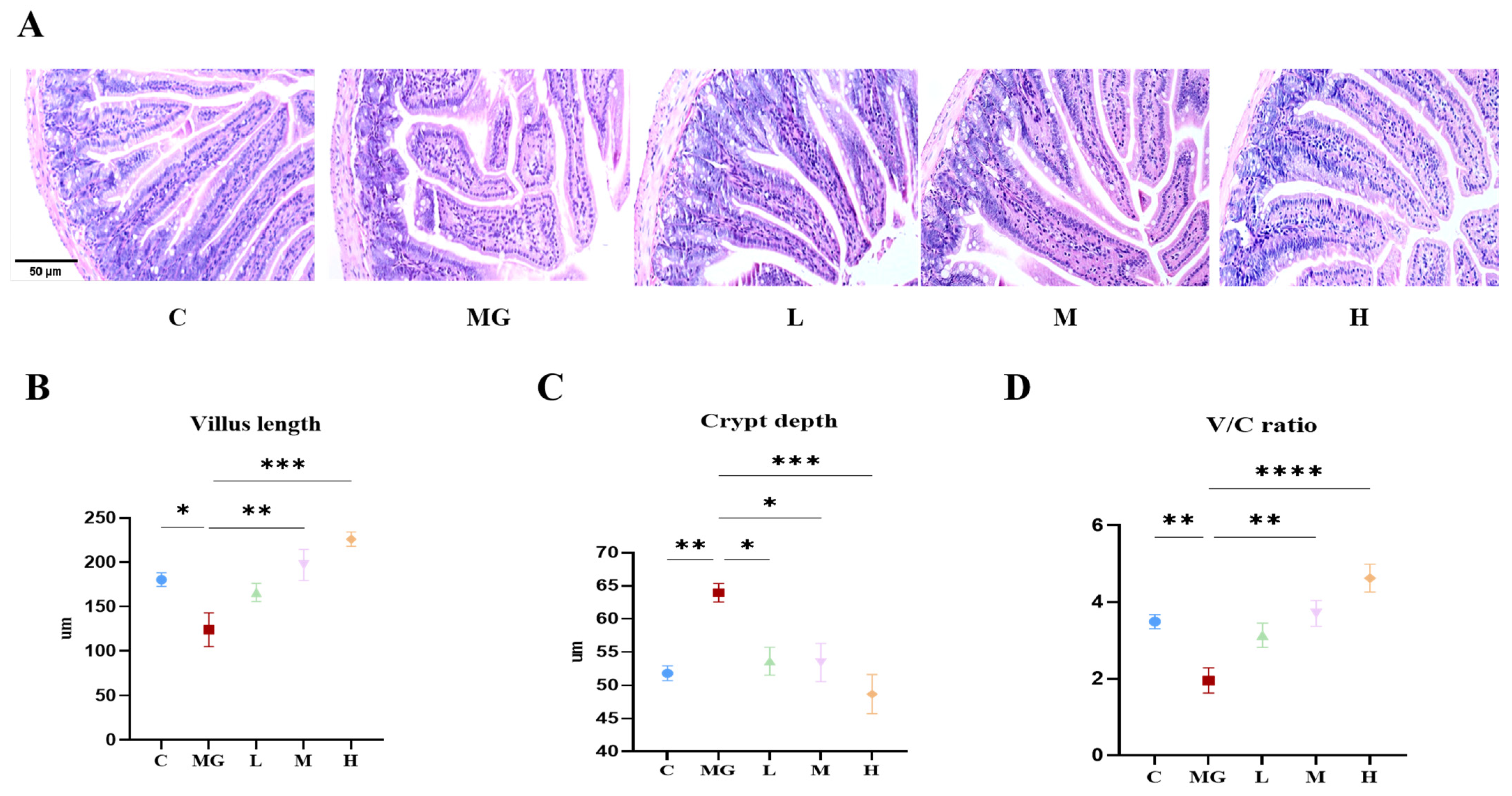 2.6. Assessment of Oxidative Stress Markers in Jejunum