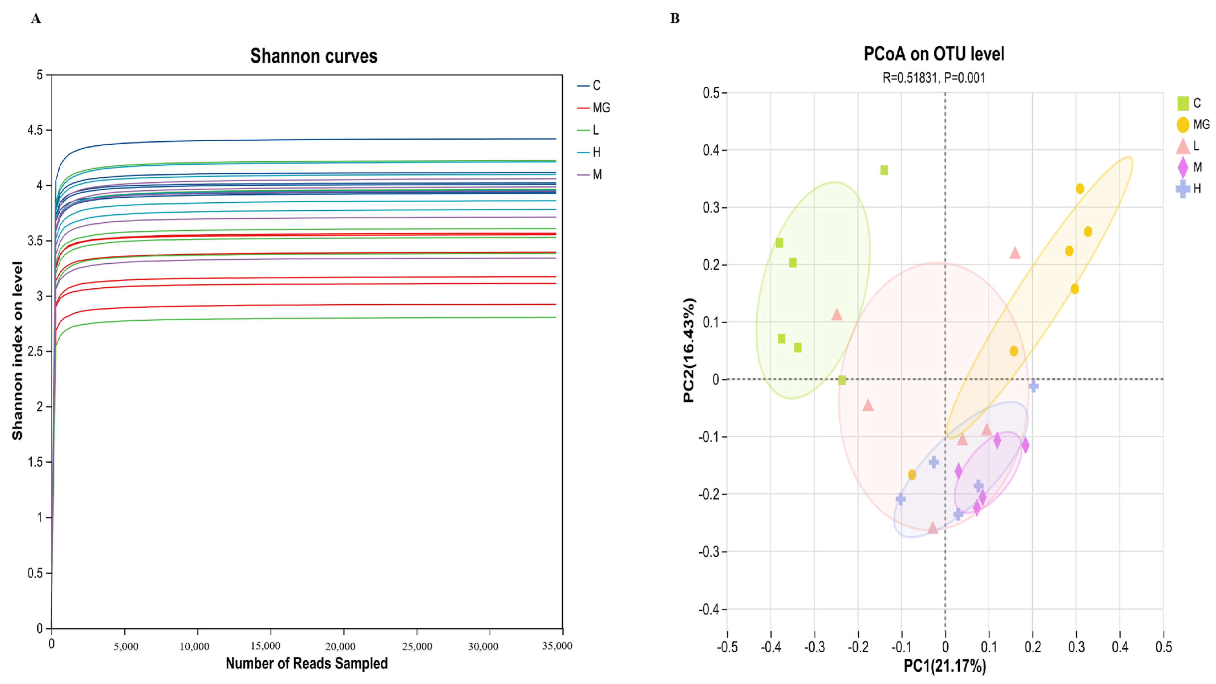 3.6.1. Alpha Diversity and Beta Diversity