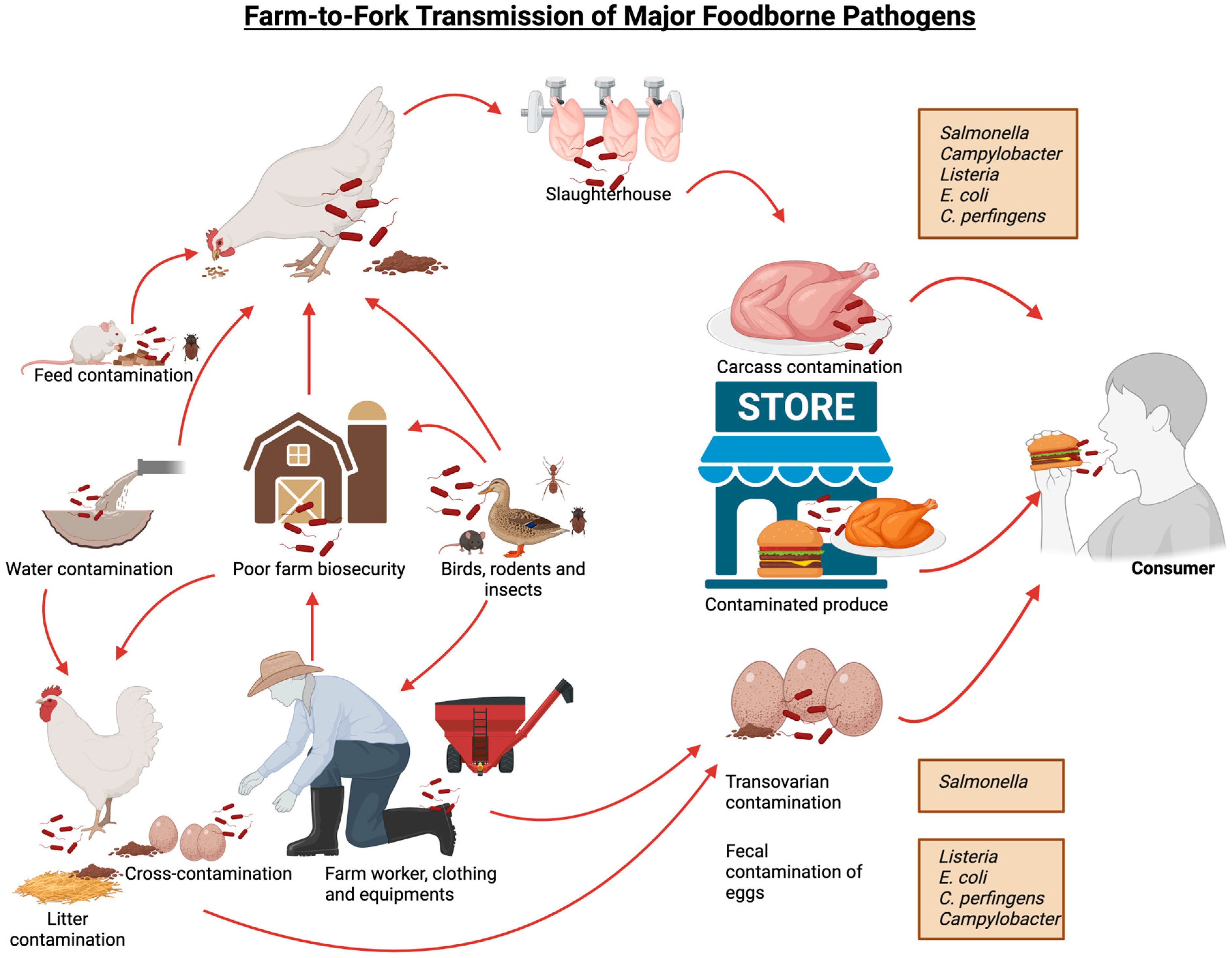 2. Major Food-Borne Pathogens in Poultry and Probiotic Mitigation Strategies