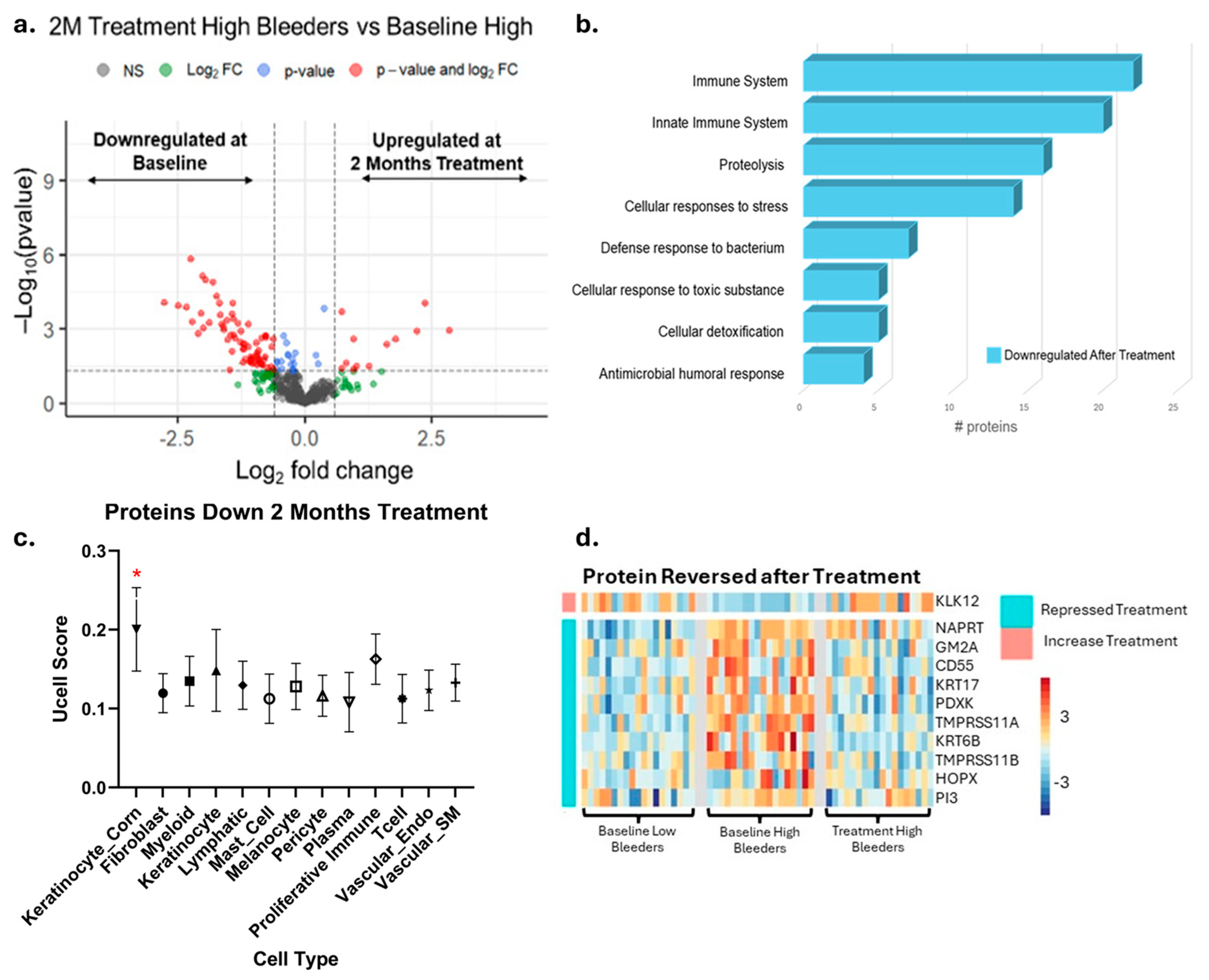 3.2. Saliva Proteomics and Single-Cell Integration Analyses Reveal Proteins Differentially Expressed at Baseline in High Bleeders Compared with Low Bleeders
