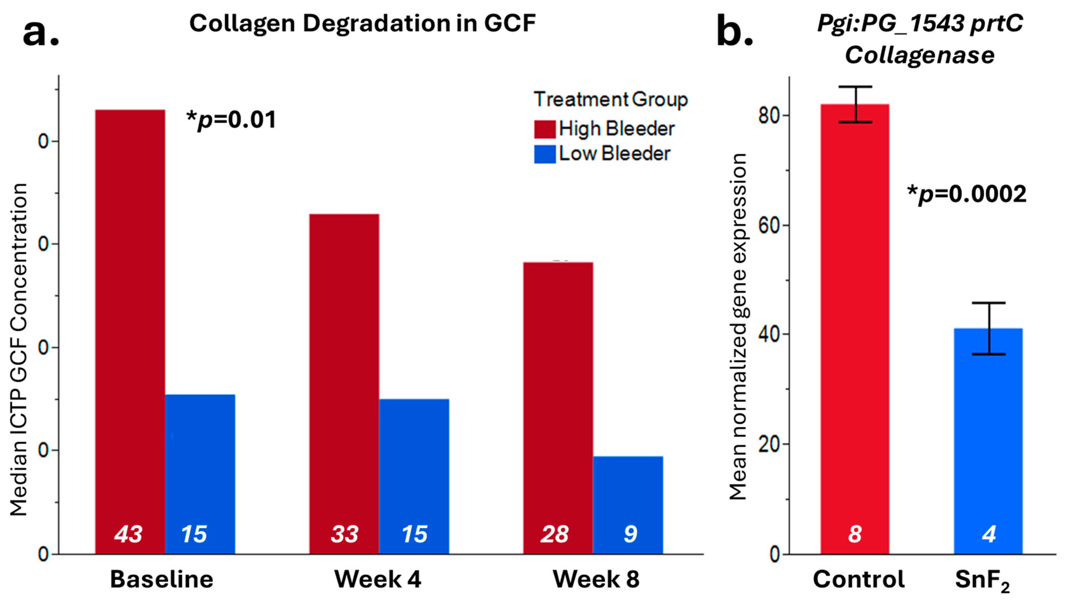 3.6. Impact of SnF2 Toothpaste After Eight Weeks of Treatment in High Bleeders