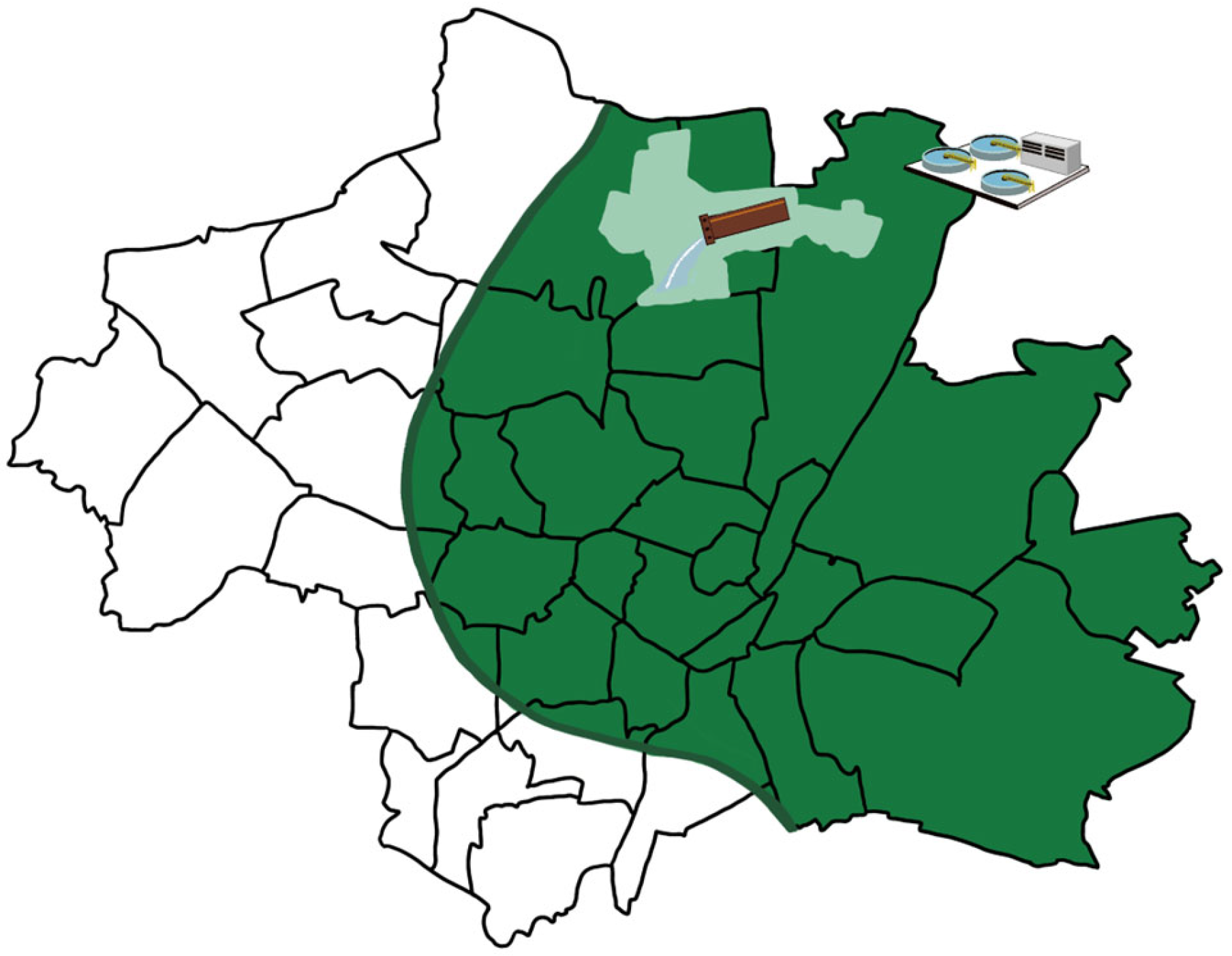 21]. For this study, we chose the area of Schmidbartlanger, which has a total of 66,914 permanent inhabitants. With a drainage area size of 670 ha and a maximum time of five hours from sink to sampling, this sampling site was chosen to be representative of the Munich population. The sampling time was chosen to reflect the morning flush surge. As of November 2021, we also analyzed a 24-h compound sample from the wastewater treatment plant (WWTP) Gut Grosslappen, located in the northern part of Munich, with a catchment area of about 961,207 permanent inhabitants. The areas are depicted in