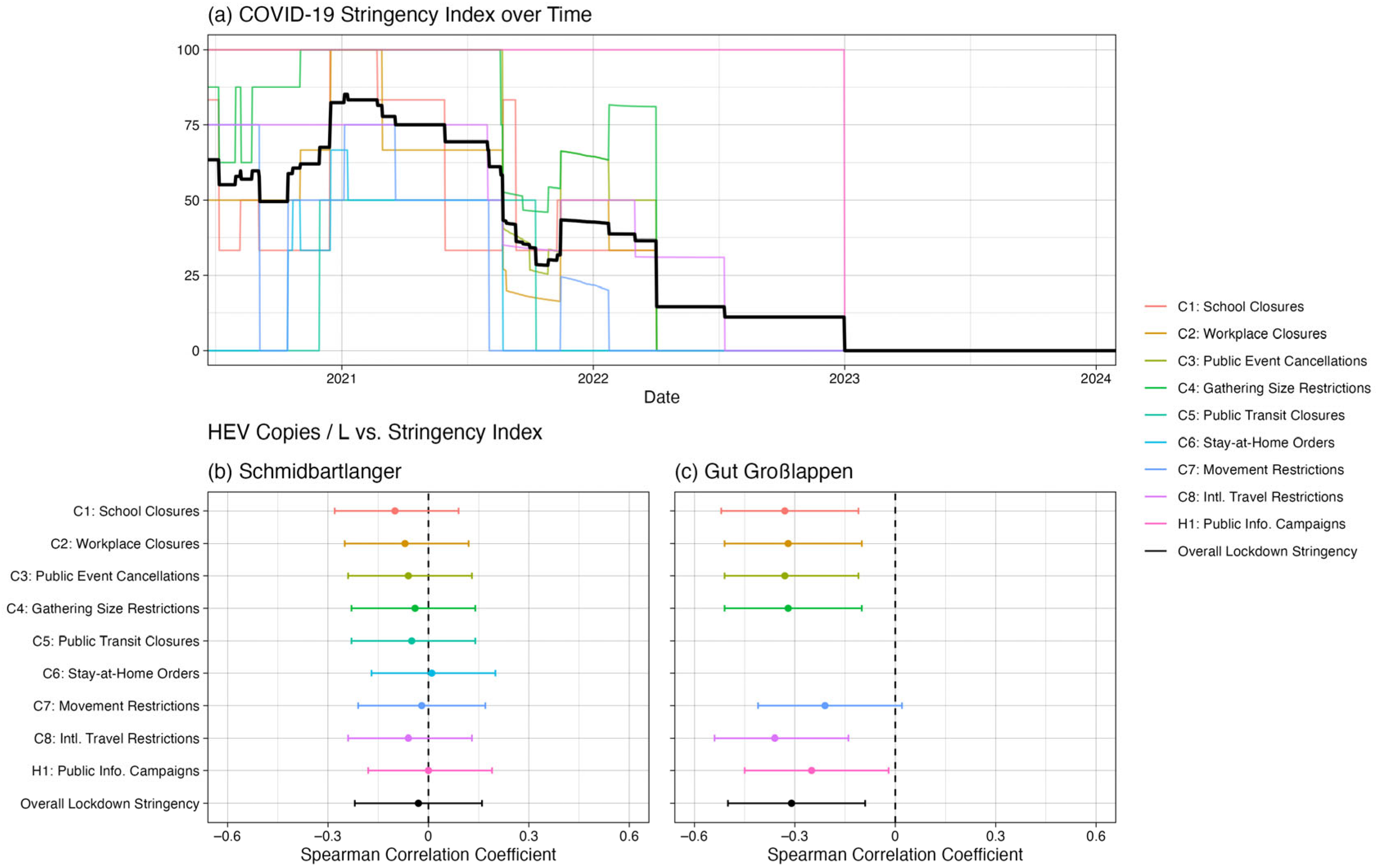 28] and the HEV wastewater data for Gut Grosslappen, suggesting that HEV concentrations were generally higher when lockdown measures were less strict (