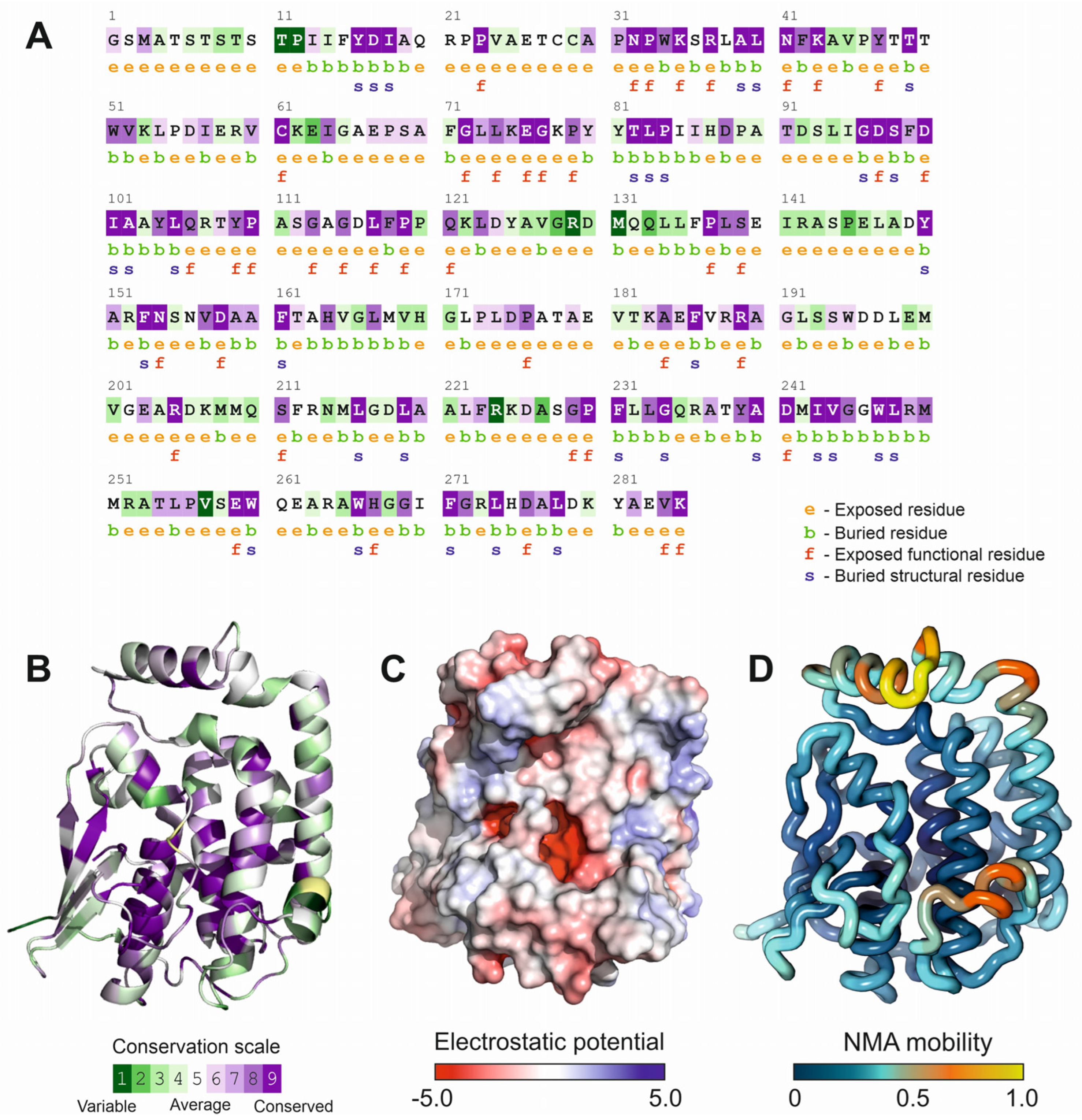 - Ashkenazy, H.; Abadi, S.; Martz, E.; Chay, O.; Mayrose, I.; Pupko, T.; Ben-Tal, N. ConSurf 2016: An improved methodology to estimate and visualize evolutionary conservation in macromolecules. Nucleic Acids Res. 2016, 44, W344–W350. [Google Scholar] [CrossRef]