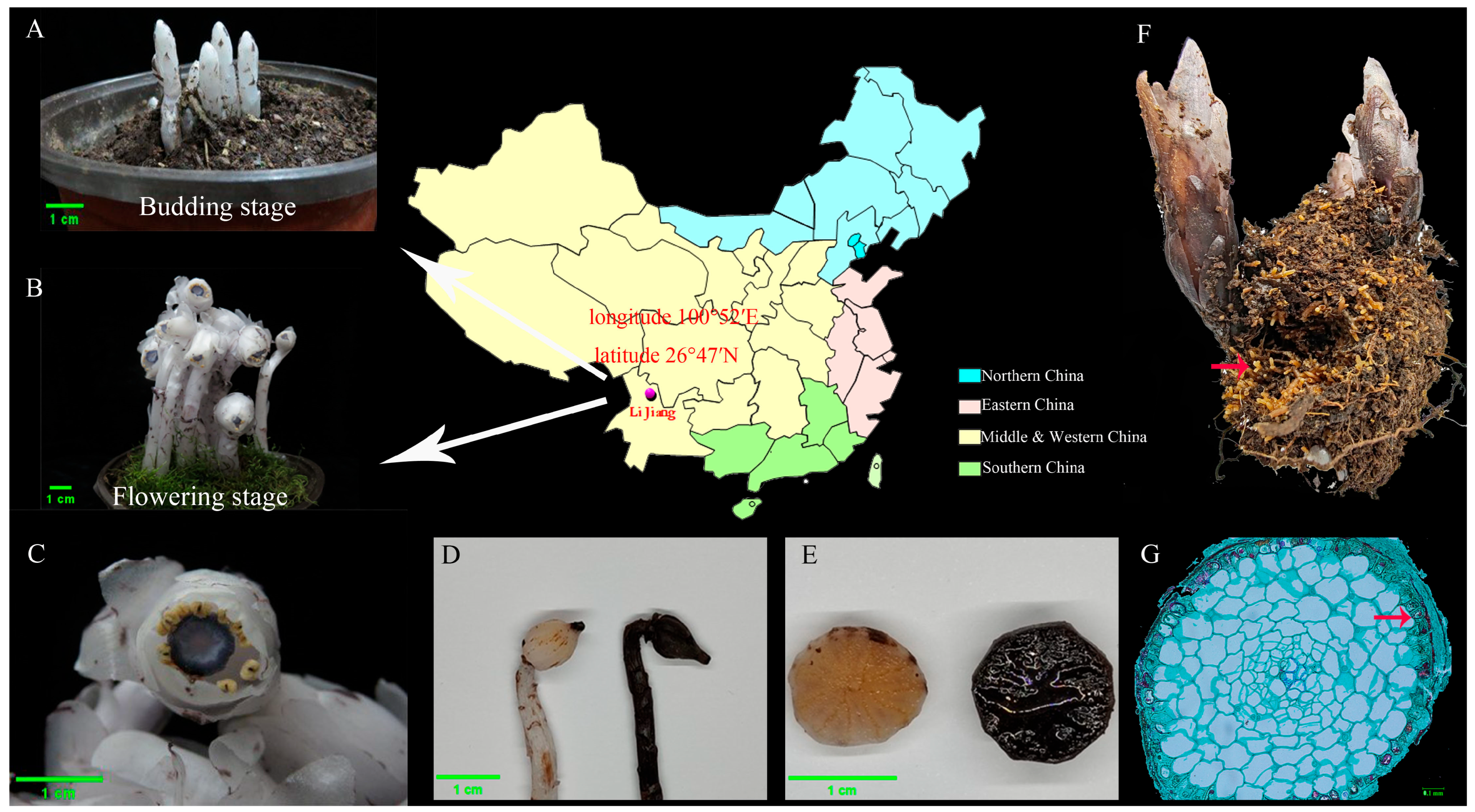 3.1. Morphological Observation of Myco-Heterotrophic Plants
