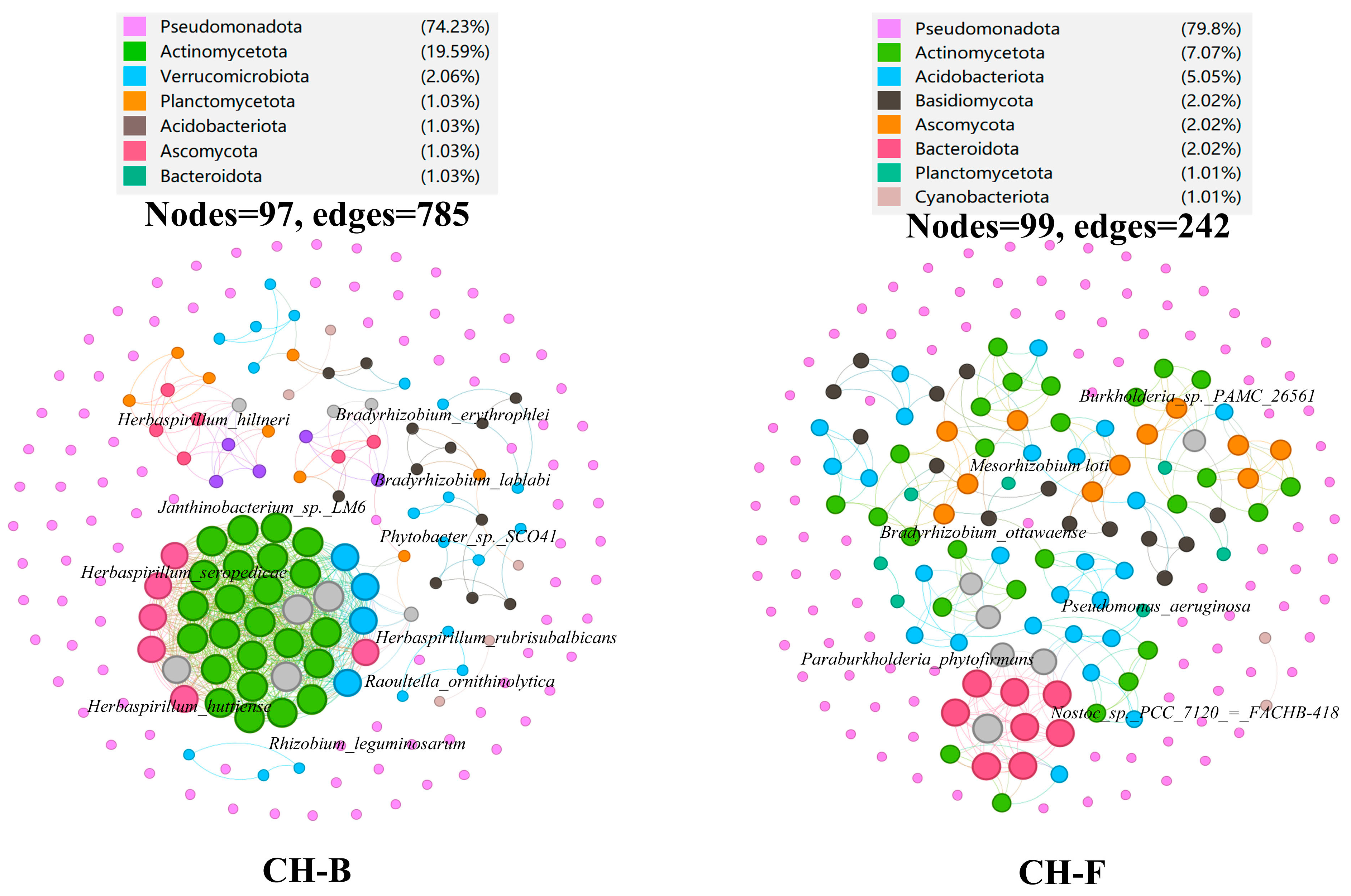 - Kuang, L.; Li, T.; Wang, B.; Peng, J.; Li, J.; Li, P.; Jiang, J. Diseased-induced multifaceted variations in community assembly and functions of plant-associated microbiomes. Front. Microbiol. 2023, 14, 1141585. [Google Scholar] [CrossRef]