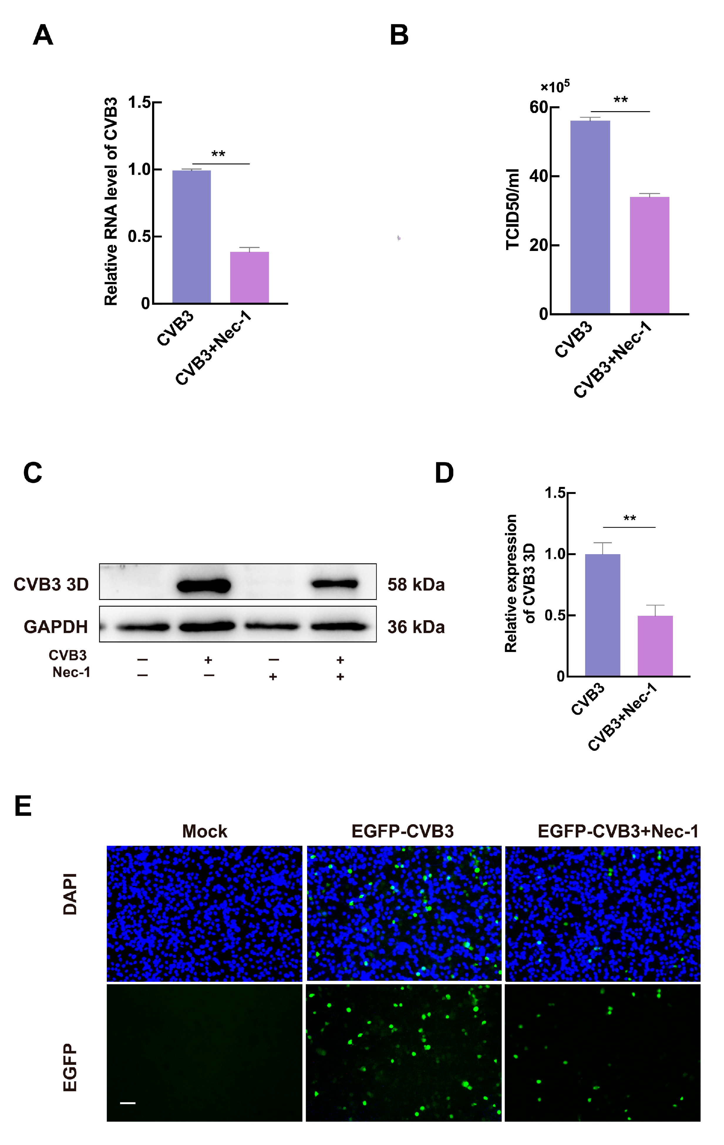 3.3. Necroptosis Promotes CVB3 Replication In Vitro