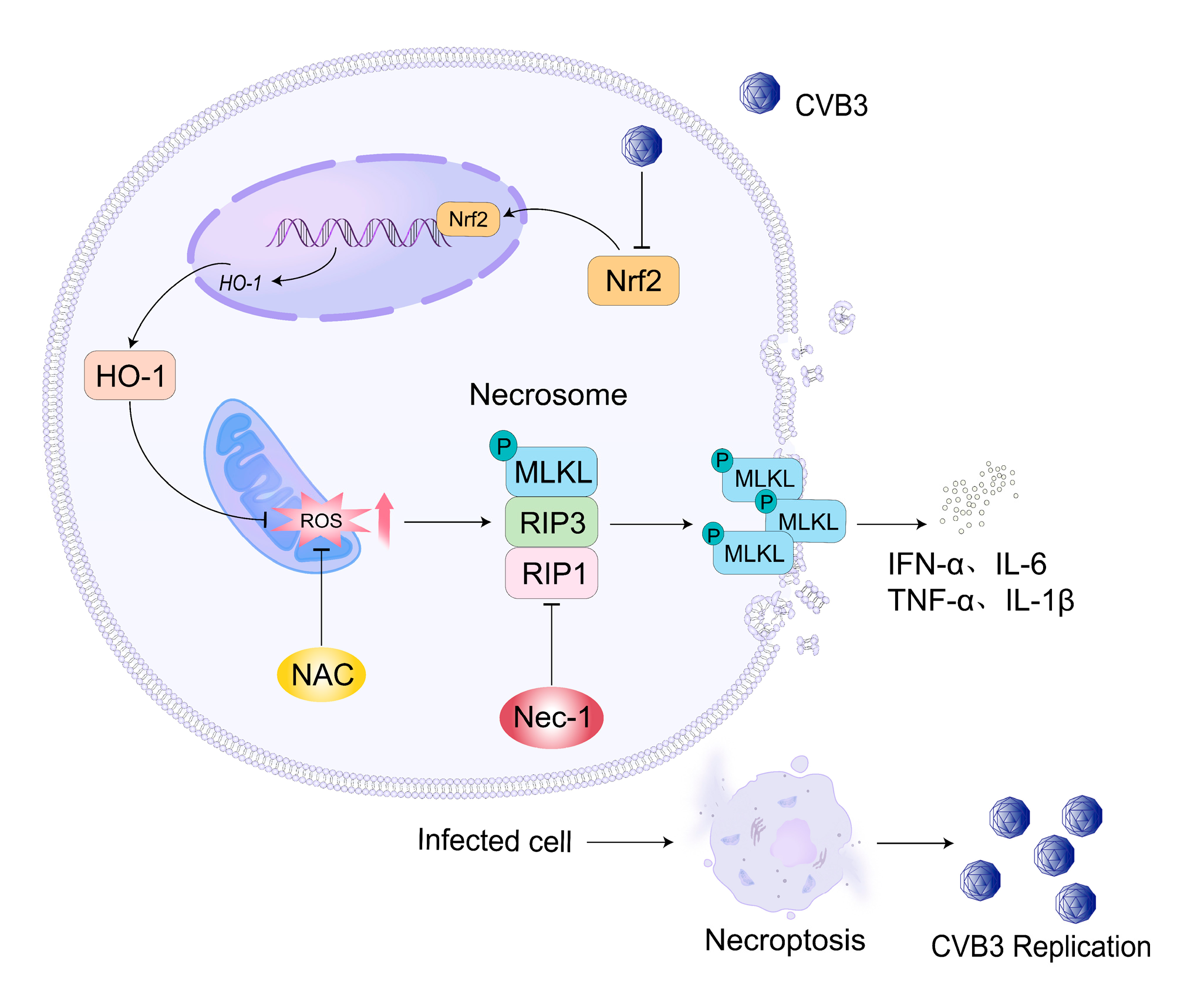 Chicago/Turabian StyleHuang, Junbo, Yanjun Di, Qing Song, Zhiyun Cheng, Hao Wu, Mei Wu, Minjian He, Genrui Zhang, Fucai Wang, and Lei Tong. 2025. "ROS-Mediated Necroptosis Promotes Coxsackievirus B3 Replication and Myocardial Injury" Microorganisms 13, no. 10: 2389. https://doi.org/10.3390/microorganisms13102389