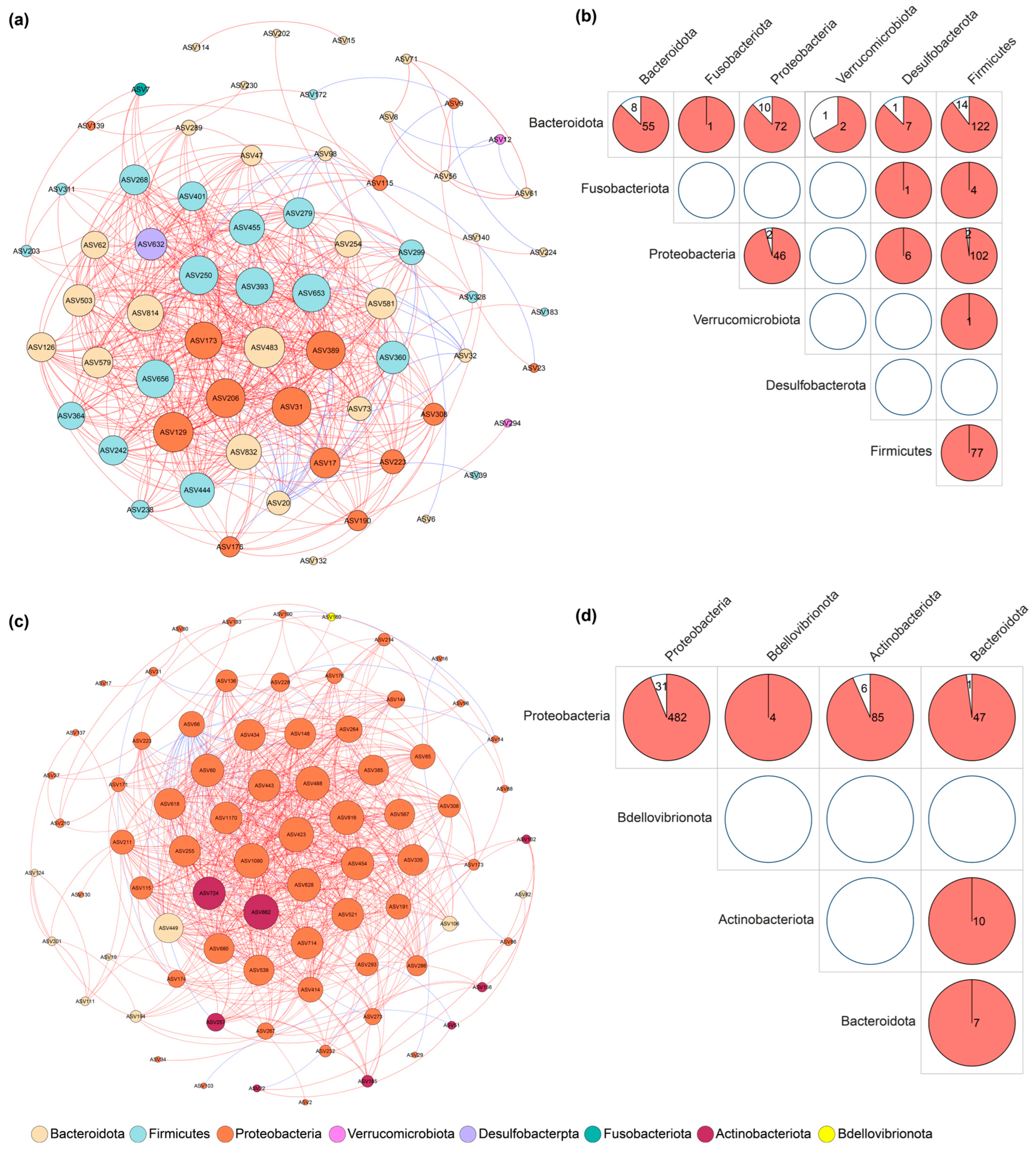 3.2. Core Microbiome and Co-Occurrence Networks