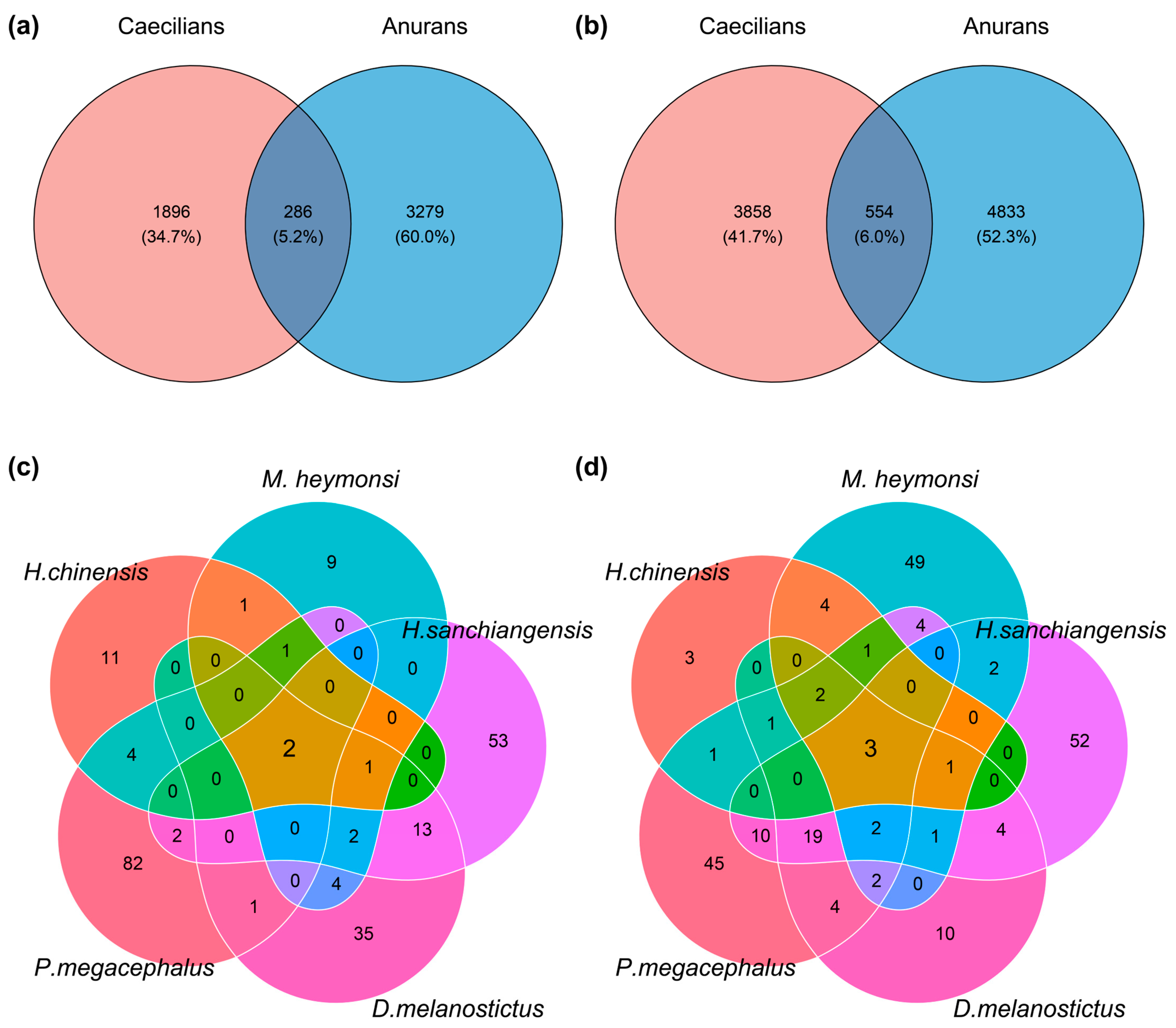 - Tong, Q.; Du, X.P.; Hu, Z.F.; Cui, L.Y.; Bie, J.; Zhang, Q.Z.; Xiao, J.H.; Lin, Y.; Wang, H.B. Comparison of the gut microbiota of Rana amurensis and Rana dybowskii under natural winter fasting conditions. FEMS Microbiol. Lett. 2019, 366, fnz241. [Google Scholar] [CrossRef] [PubMed]