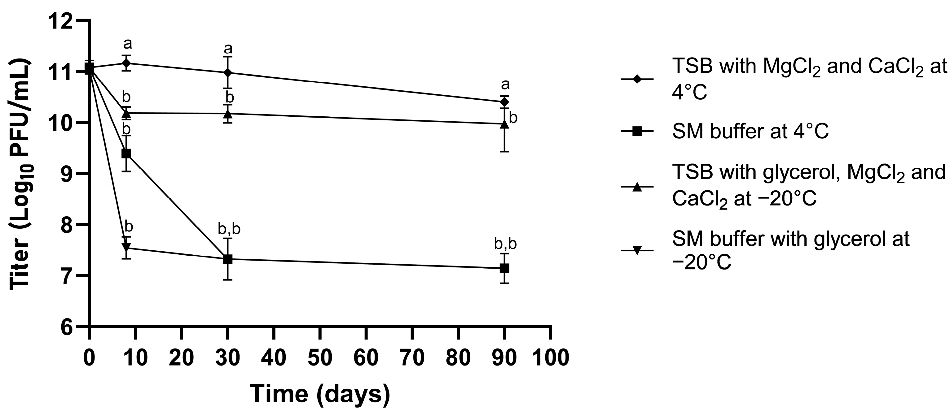 - Alvi, I.A.; Asif, M.; Tabassum, R.; Abbas, Z.; Ur Rehman, S. Storage of bacteriophages at 4 °C leads to no loss in their titer after one year. Pak. J. Zool. 2018, 50, 2395. [Google Scholar] [CrossRef]