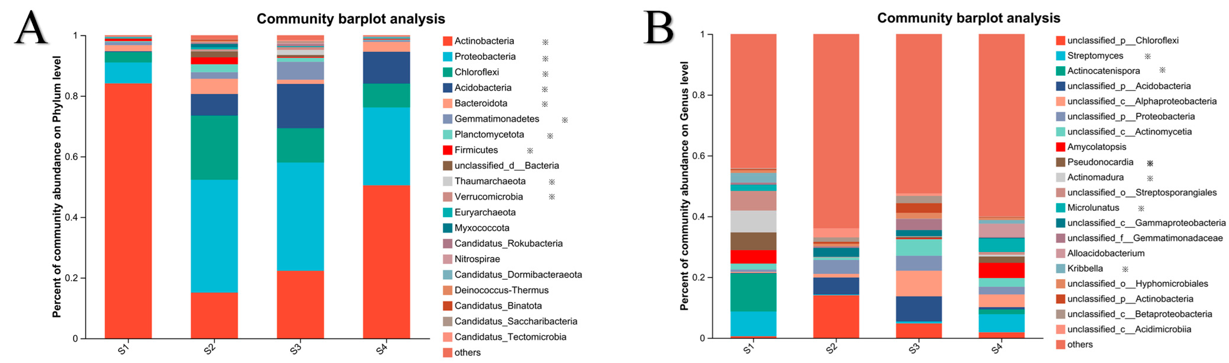 - Li, T.T.; Li, R.C.; Cao, Y.F.; Tao, C.Y.; Deng, X.H.; Ou, Y.N. Soil antibiotic abatement associates with the manipulation of soil microbiome via long-term fertilizer application. J. Hazard. Mater. 2022, 439, 129704. [Google Scholar] [CrossRef]