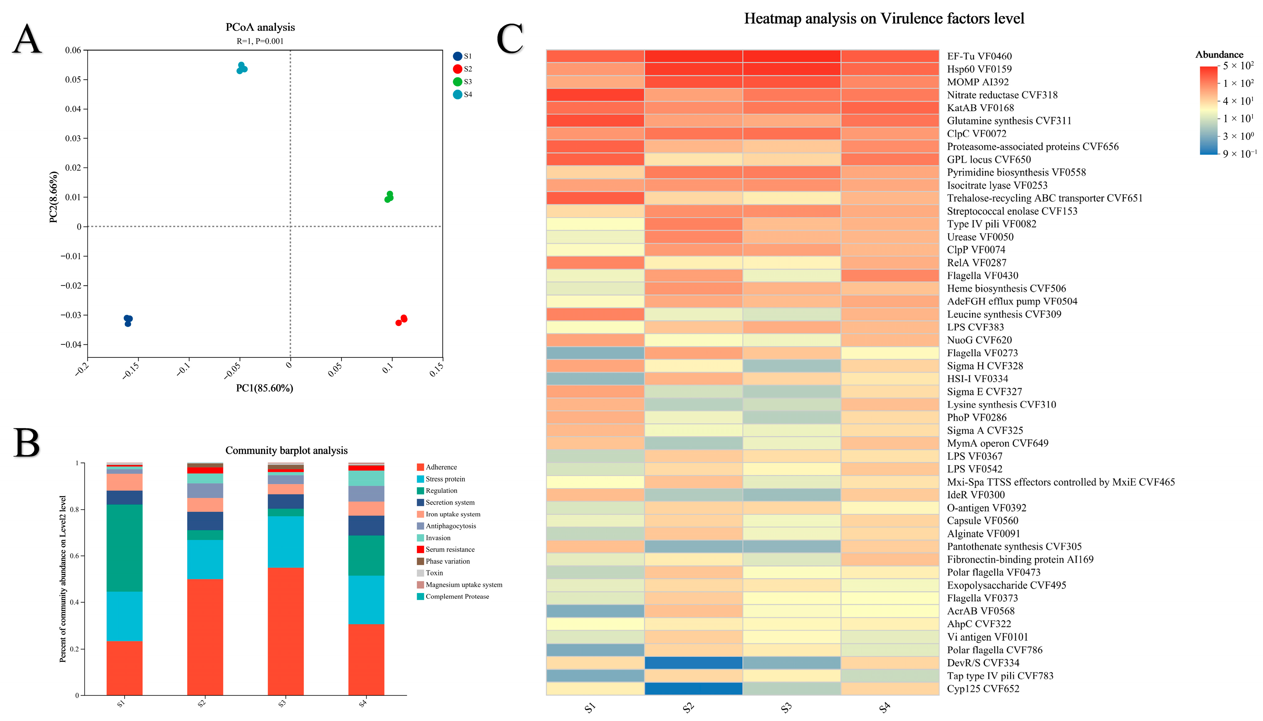 - Liu, B.; Zheng, D.; Zhou, S.; Chen, L.; Yang, J. VFDB 2022: A general classification scheme for bacterial virulence factors. Nucleic Acids Res. 2022, 50, D912–D917. [Google Scholar] [CrossRef] [PubMed]