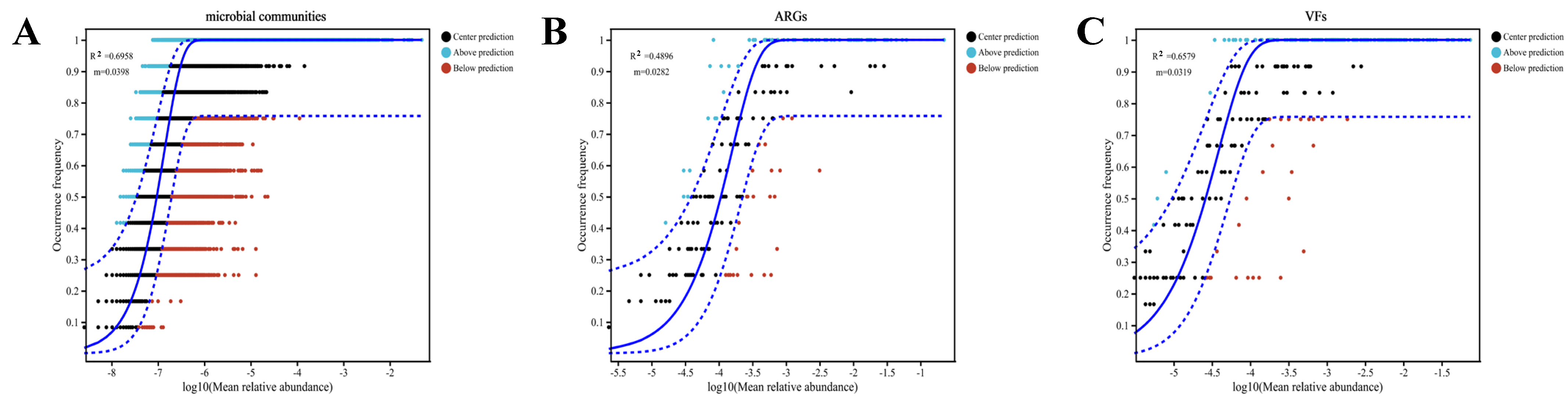 3.4. Assembly Processes and Environmental Drivers of Microbial Taxa, ARGs and VFs