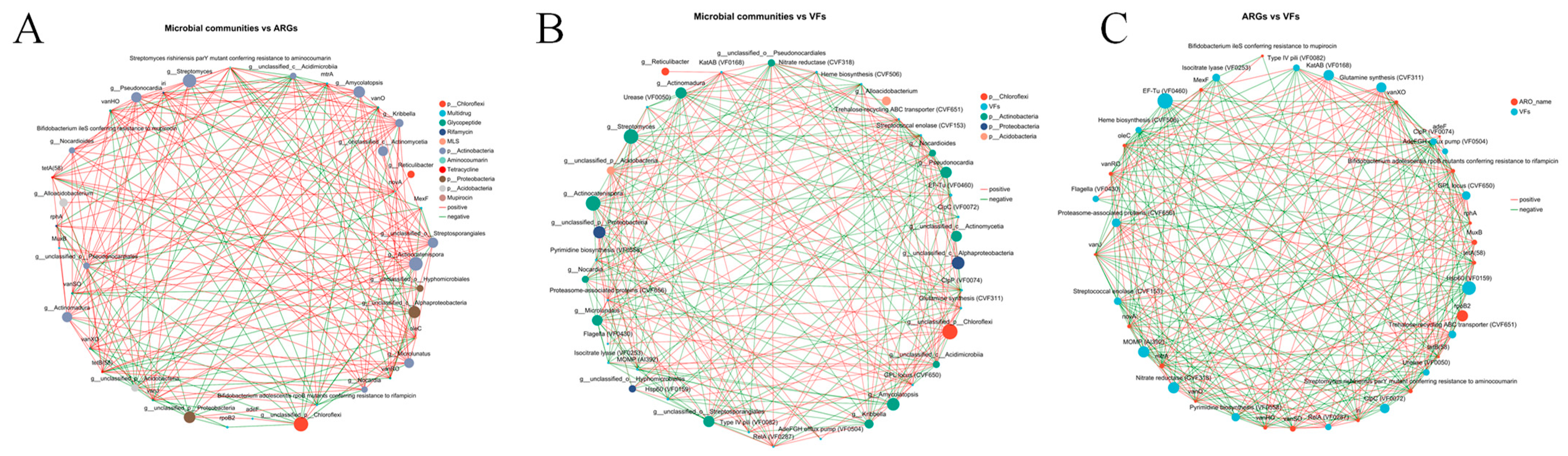 3.5. Relationships Between Microbial Taxa, ARGs and VFs