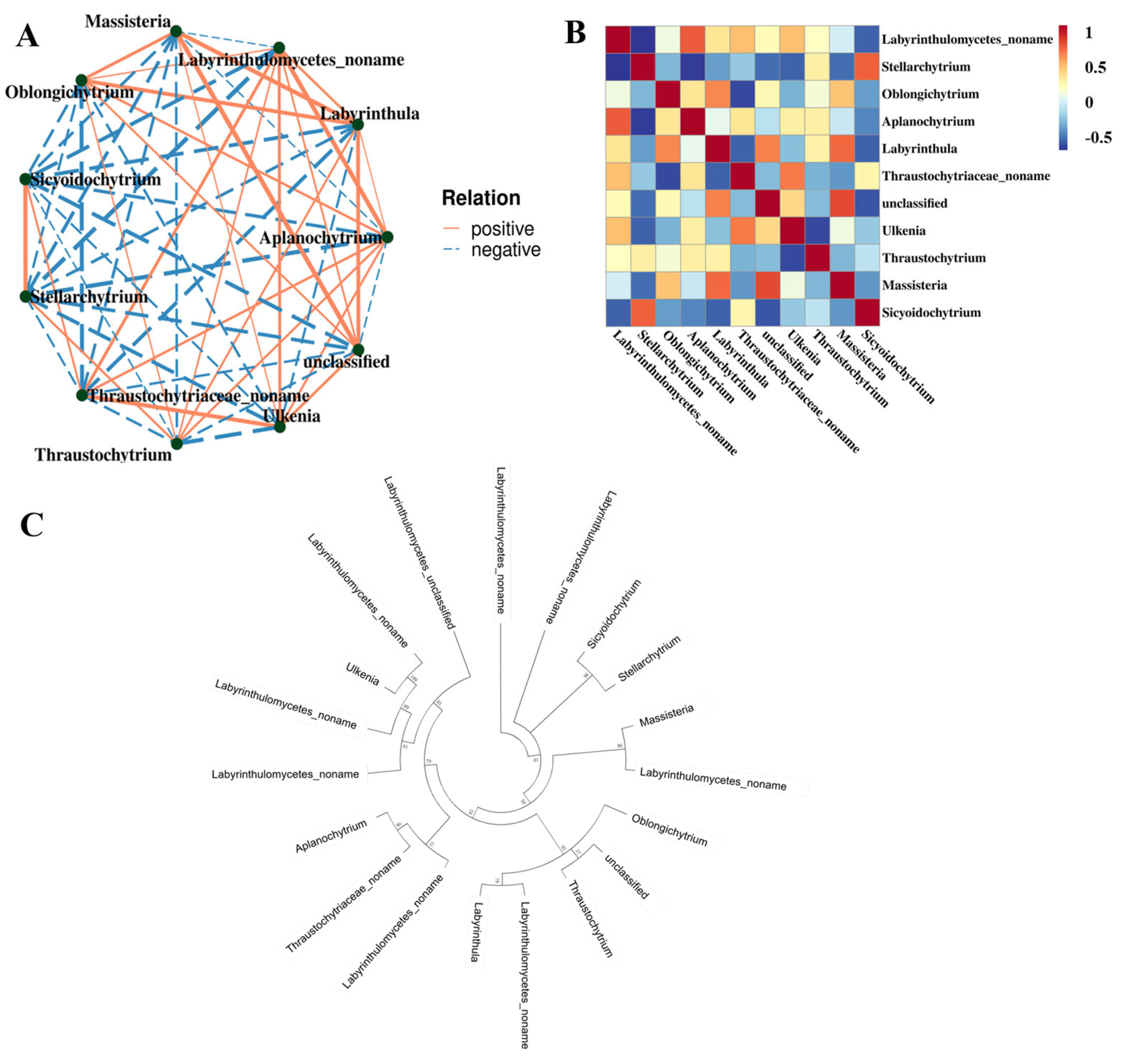 3.2. Labyrinthulomycetes Communities in Caofeidian Seagrass Beds